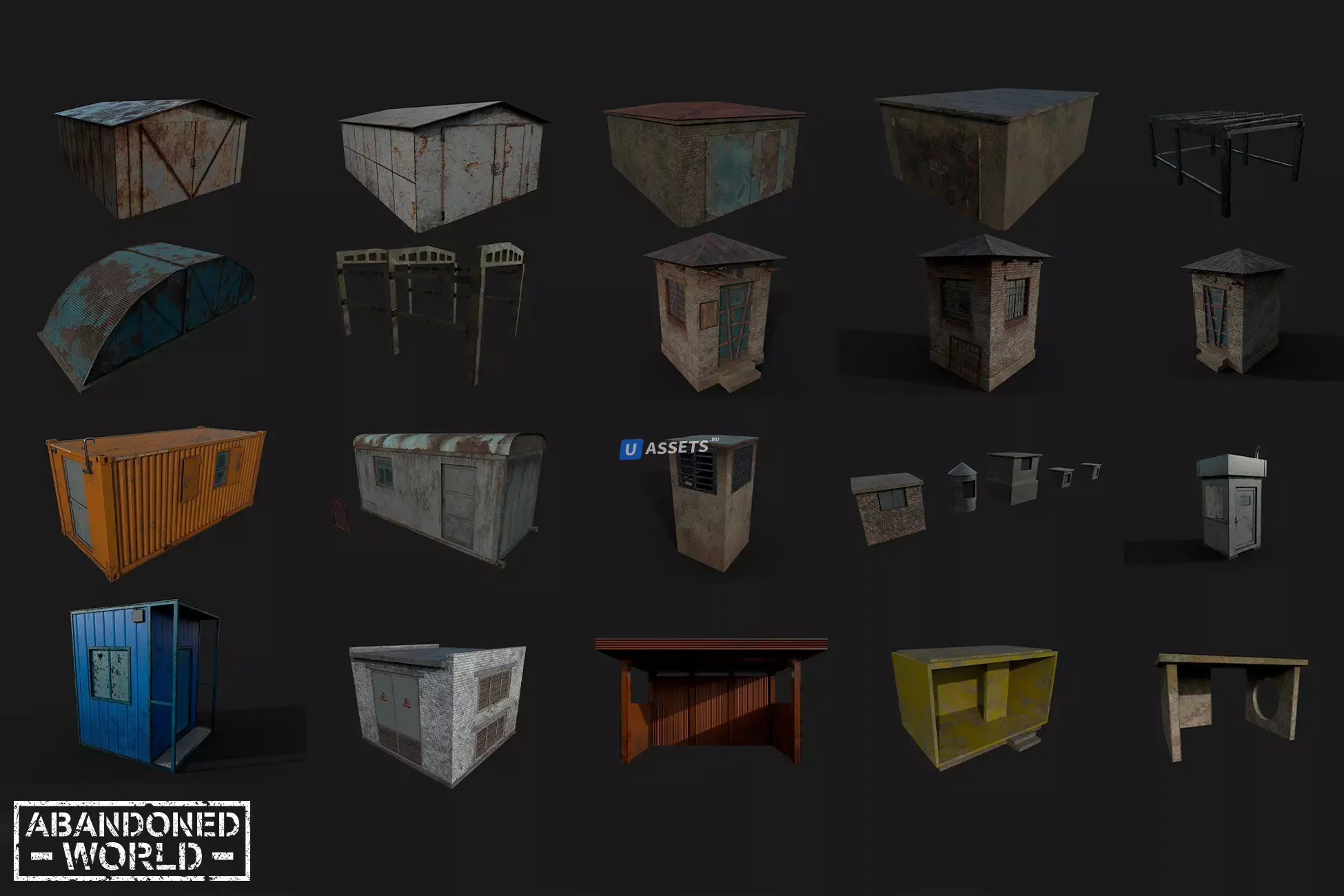 Набор небольших зданий для декораций в городе. Здания - это только экстерьеры без интерьеров. В упаковочных сетках есть различные гаражи, контрольно-пропускные пункты, вентиляционные шахты и автобусная остановка.
