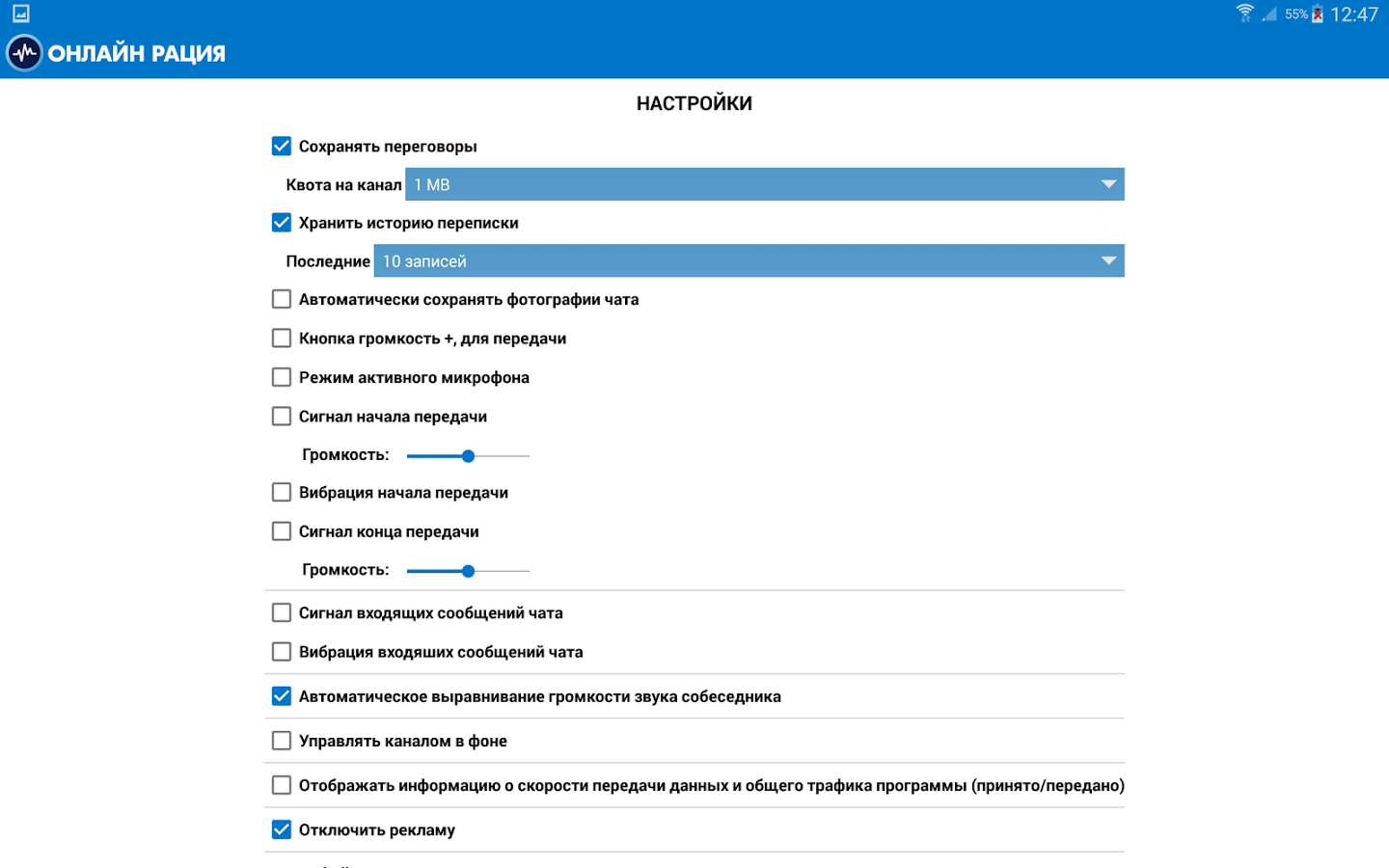 Основные возможности ONLINE PTT WALKIE-TALKIE: