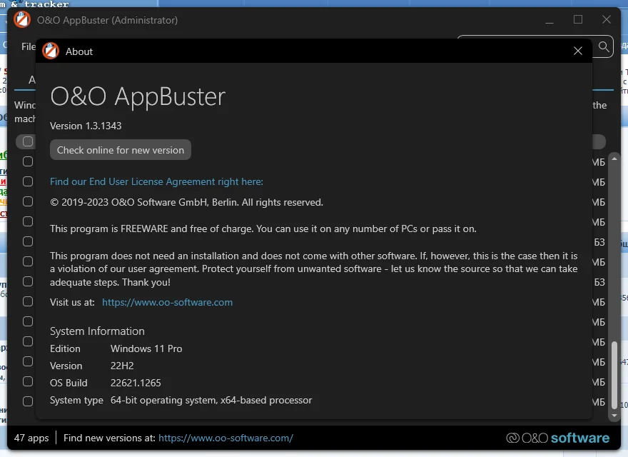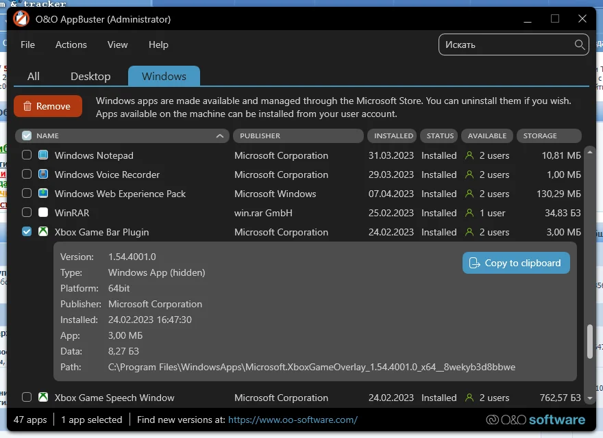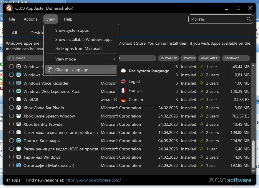 O&O AppBuster 1.3.1343 Portable — это удобный инструмент для управления предустановленными приложениями в Windows 10 и 11. При установке операционной системы Microsoft добавляет множество встроенных программ, и не все из них могут быть полезны пользователю. С помощью O&O AppBuster вы можете легко и быстро удалить ненужные компоненты, а также восстановить случайно удалённые стандартные приложения.