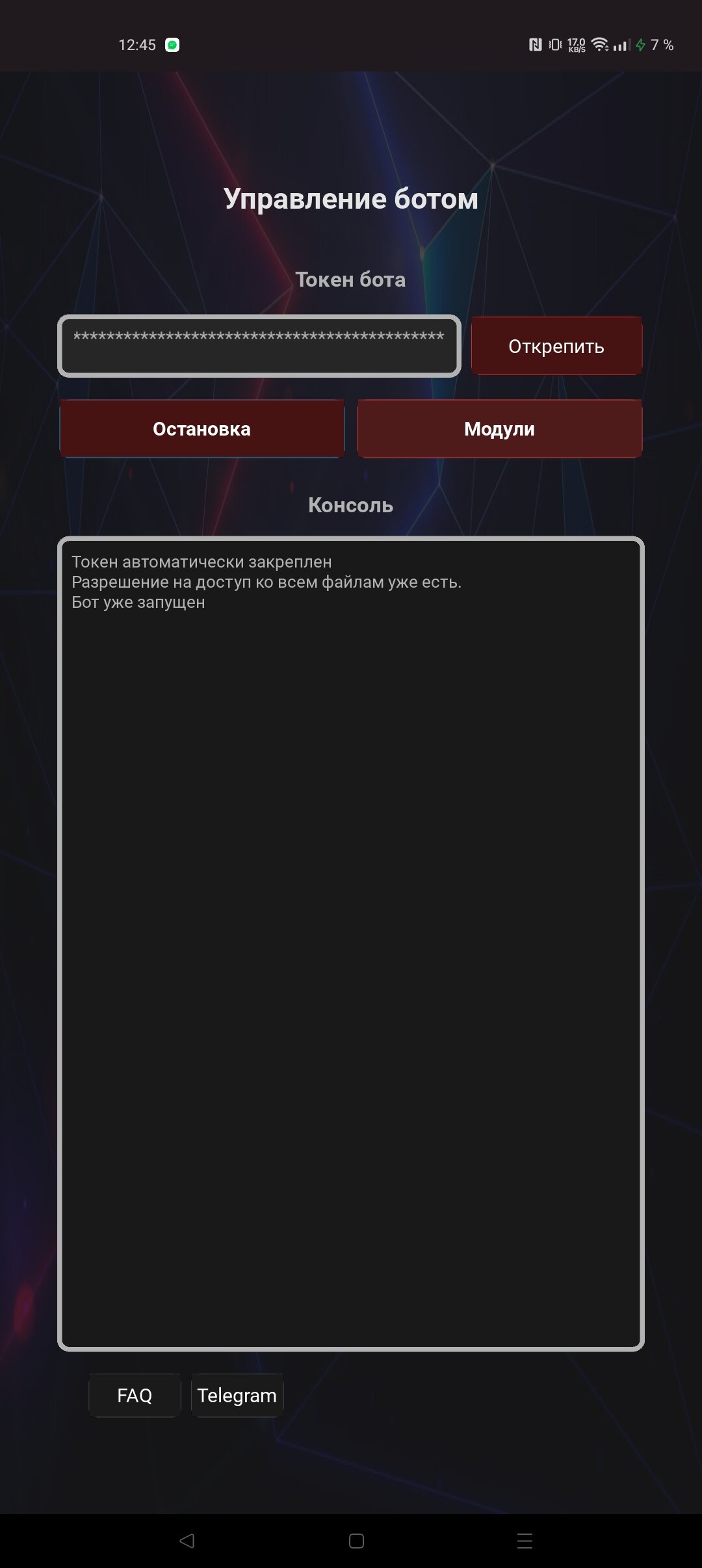 Одно из главных преимуществ программы — полная бесплатность. В ней отсутствует реклама, скрытые платежи или необходимость в подписках. При этом разработчики уделили внимание безопасности, обеспечивая защиту пользовательских данных и токенов ботов.