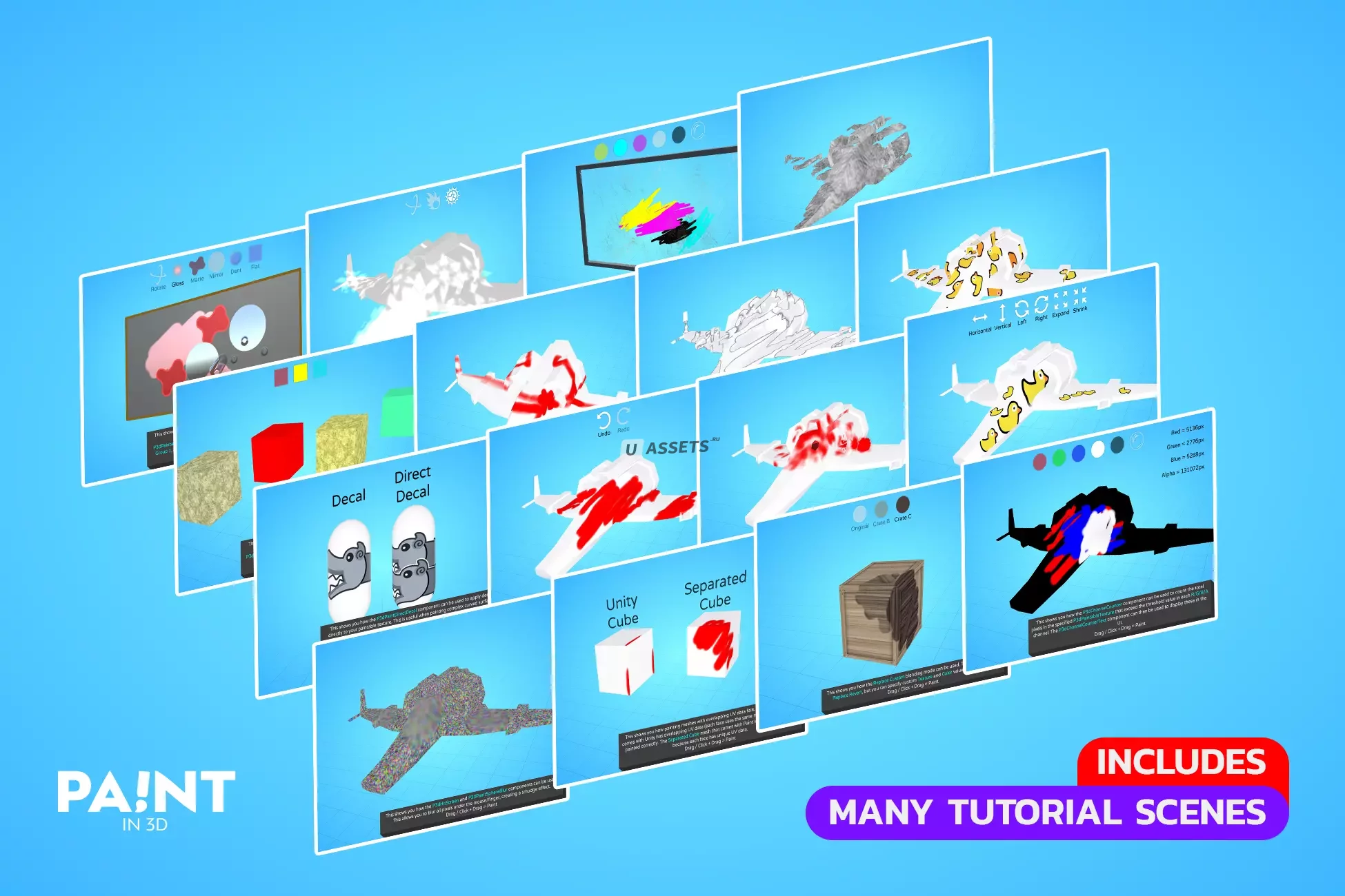 Стабильная производительность ― В отличие от систем наклеек, Paint in 3D - это решение для рисования текстур. Это означает, что вы можете рисовать свои объекты миллионы раз без потери частоты кадров, что позволяет создавать игры, которые вы никогда не считали возможными.