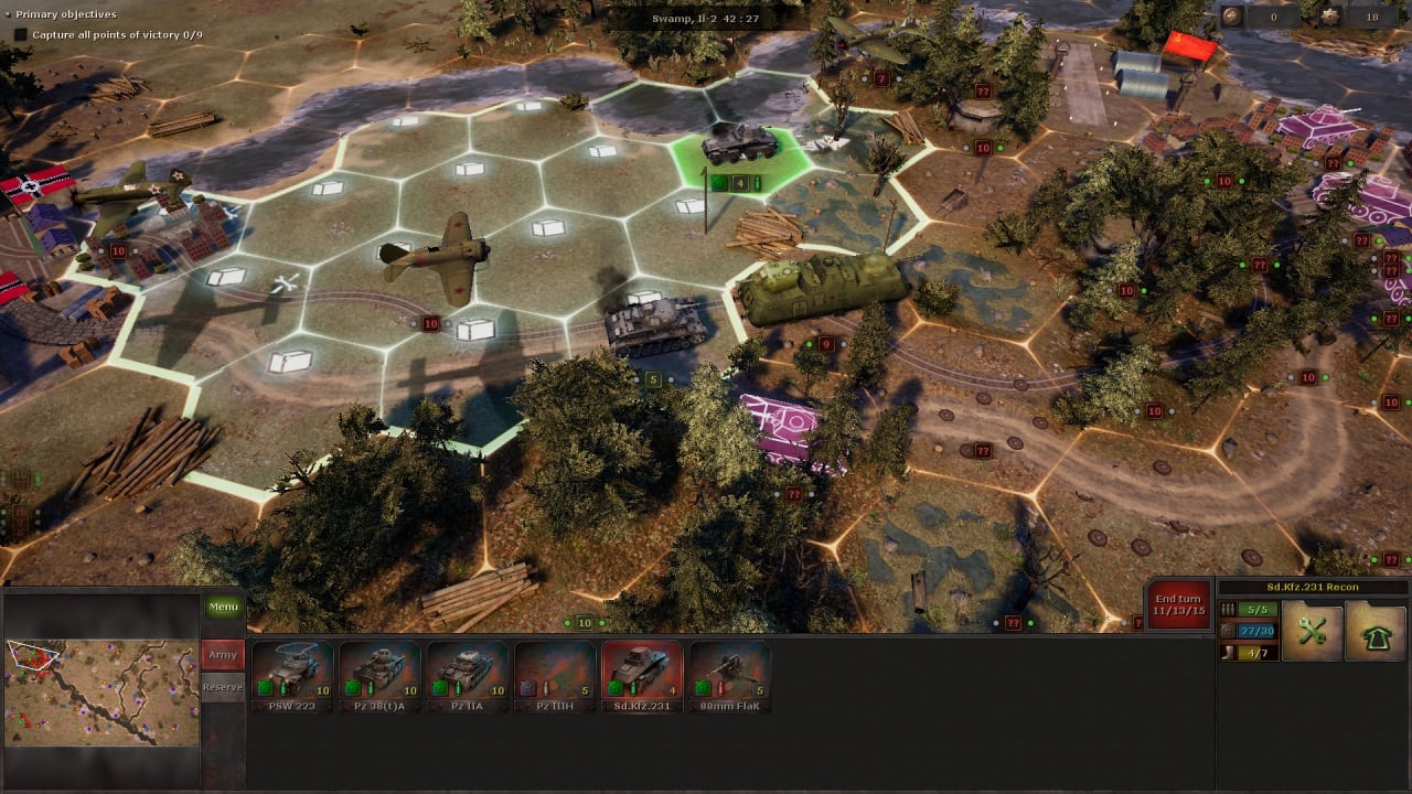 В рамках кампании вам доступно около 50 единиц сухопутной техники и более 30 кораблей, которые помогут атаковать вражеские позиции или организовать оборону. Каждая миссия в игре Panzer Strategy предполагает ограниченное количество очков командования, которые определяют ваш стартовый состав войск. Некоторые танки, самолеты и корабли имеют низкую стоимость, но и наносят мало урона, обладая слабой броней. Другие виды техники отличаются высокой скоростью и пробивной способностью, однако их живучесть на поле боя оставляет желать лучшего. Вся техника в игре разделена на классы. Разработчики постарались, чтобы: