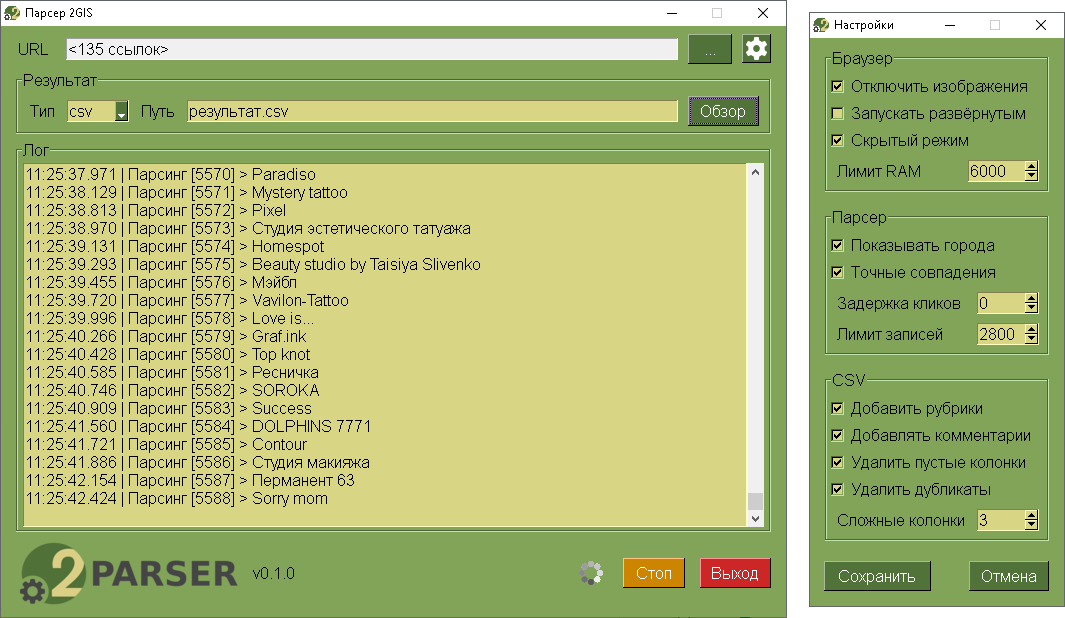 Parser2GIS - Парсер для автоматического сбора базы адресов и контактов предприятий, которые работают на территории России , Казахстана