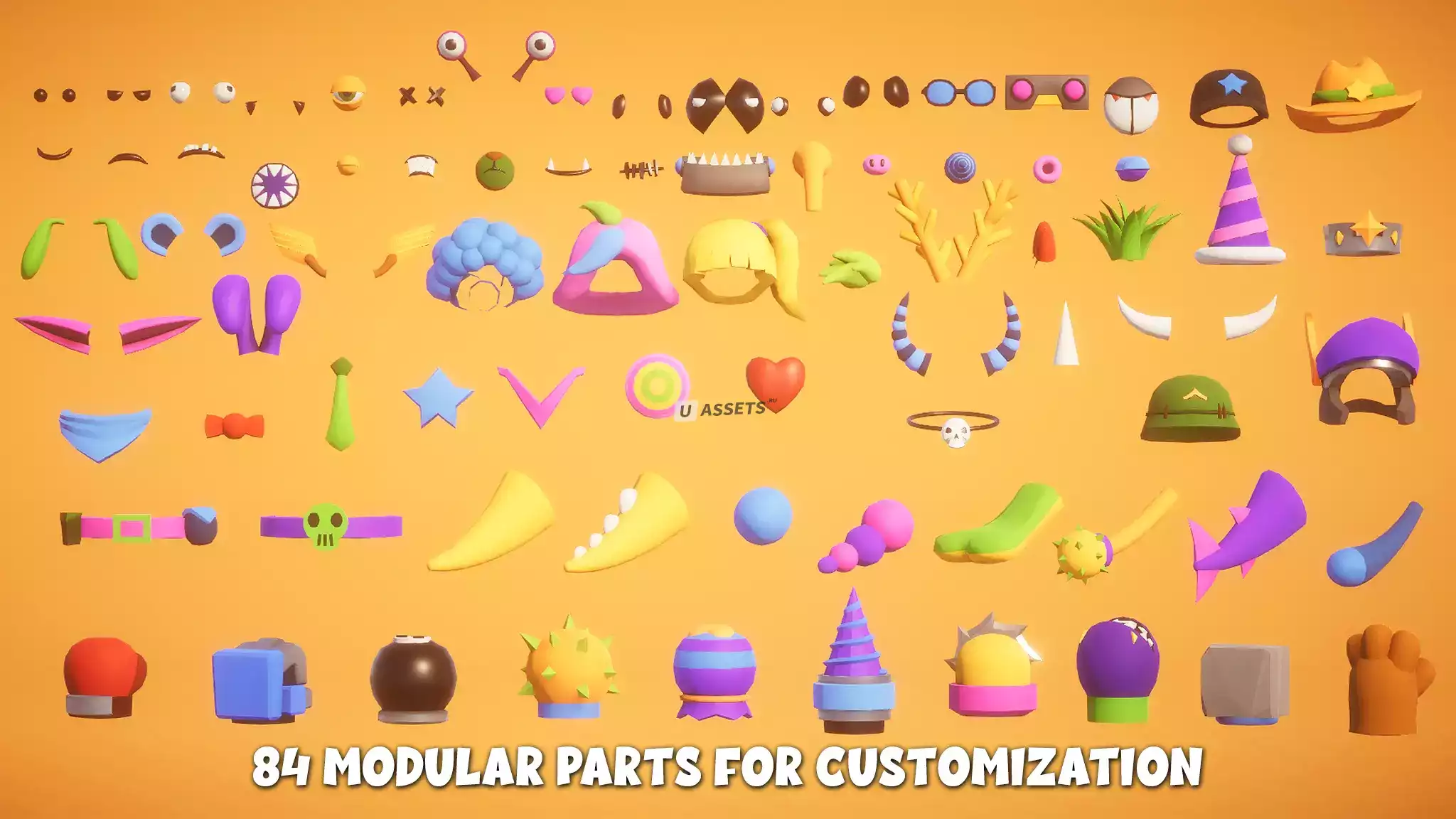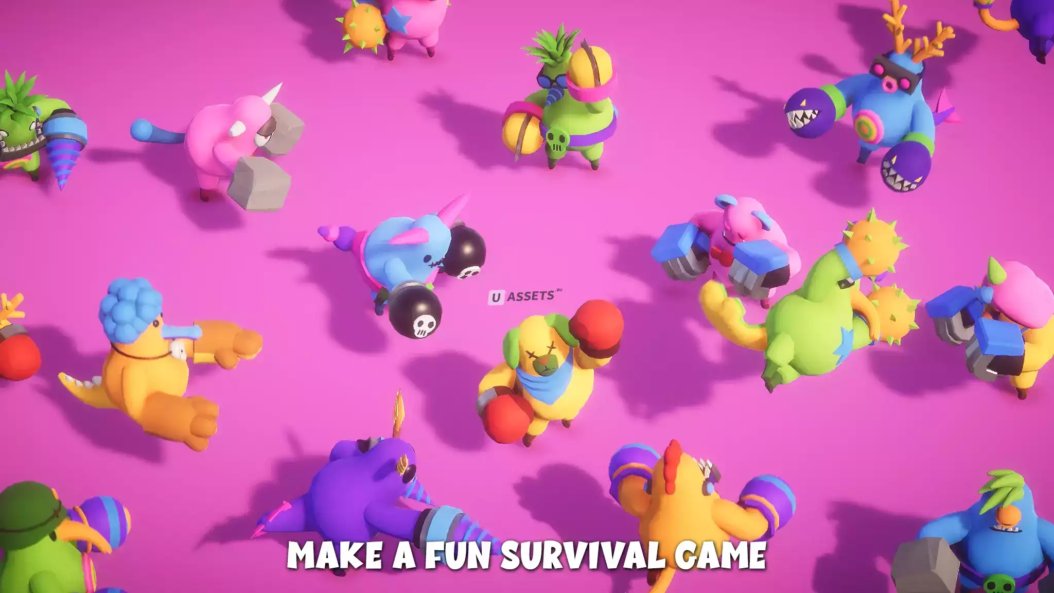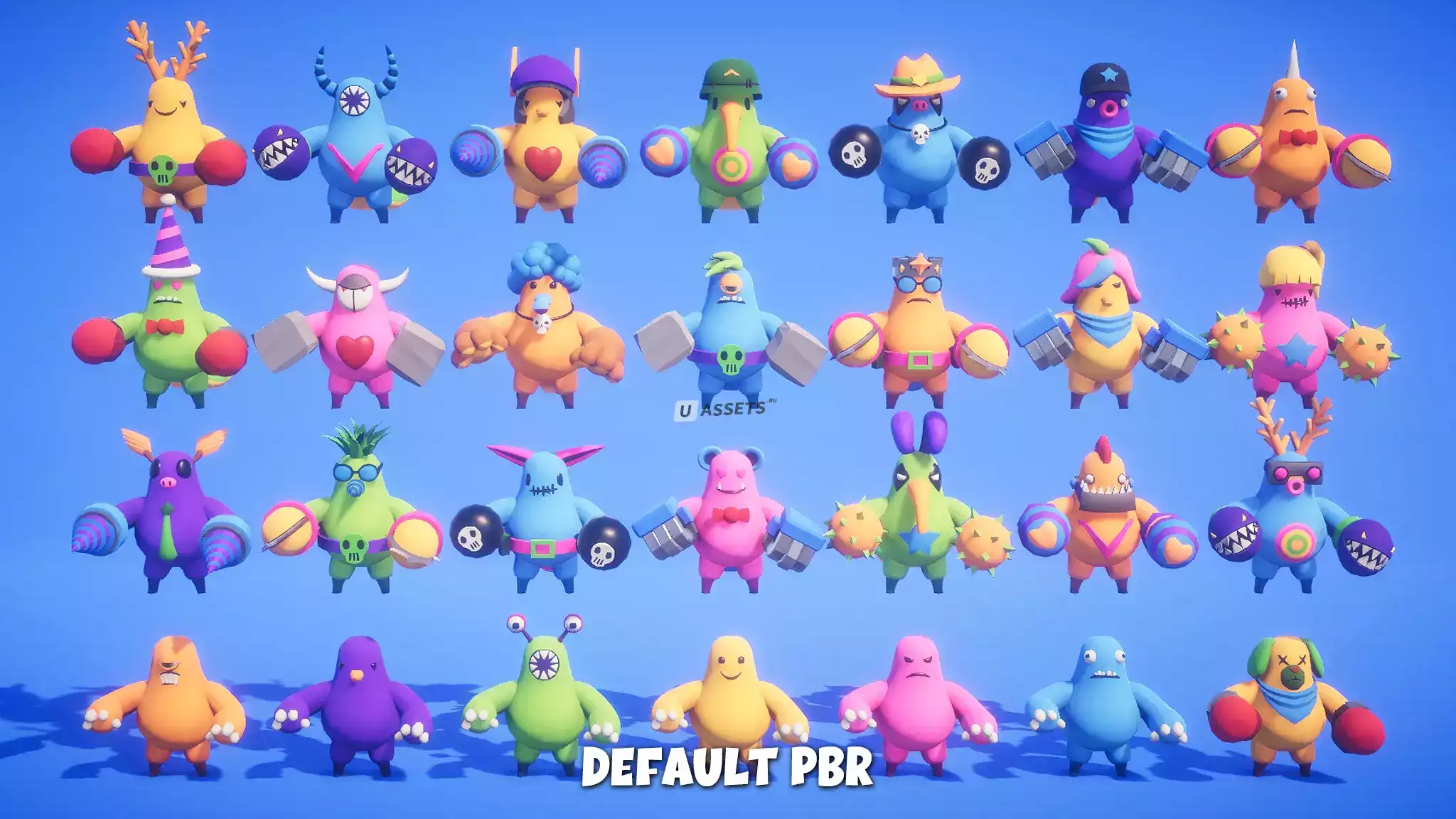 Набор лучших модульных персонажей для игр на выживание/вечеринки/драки с полным списком анимаций в стиле PBR.