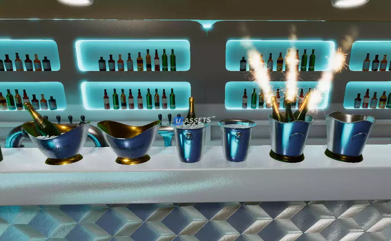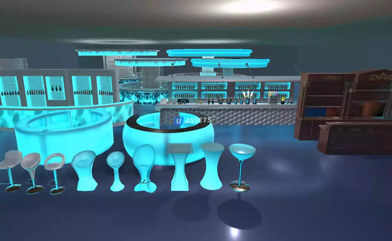 Набор из более чем 40 префабов с настраиваемыми цветами для ночного клуба, бара, гостиной.