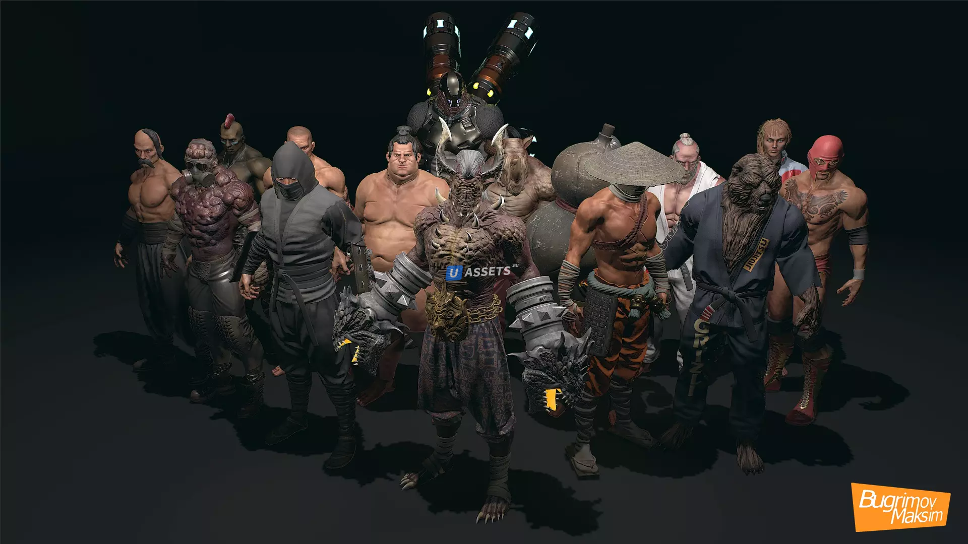 В этом паке 15 отличных персонажей.Думаю каждый найдет в этом паке своего персонажа.Персонажи не имеют анимации,но у них есть человекоподобная установка, которая работает с мокап-анимацией.