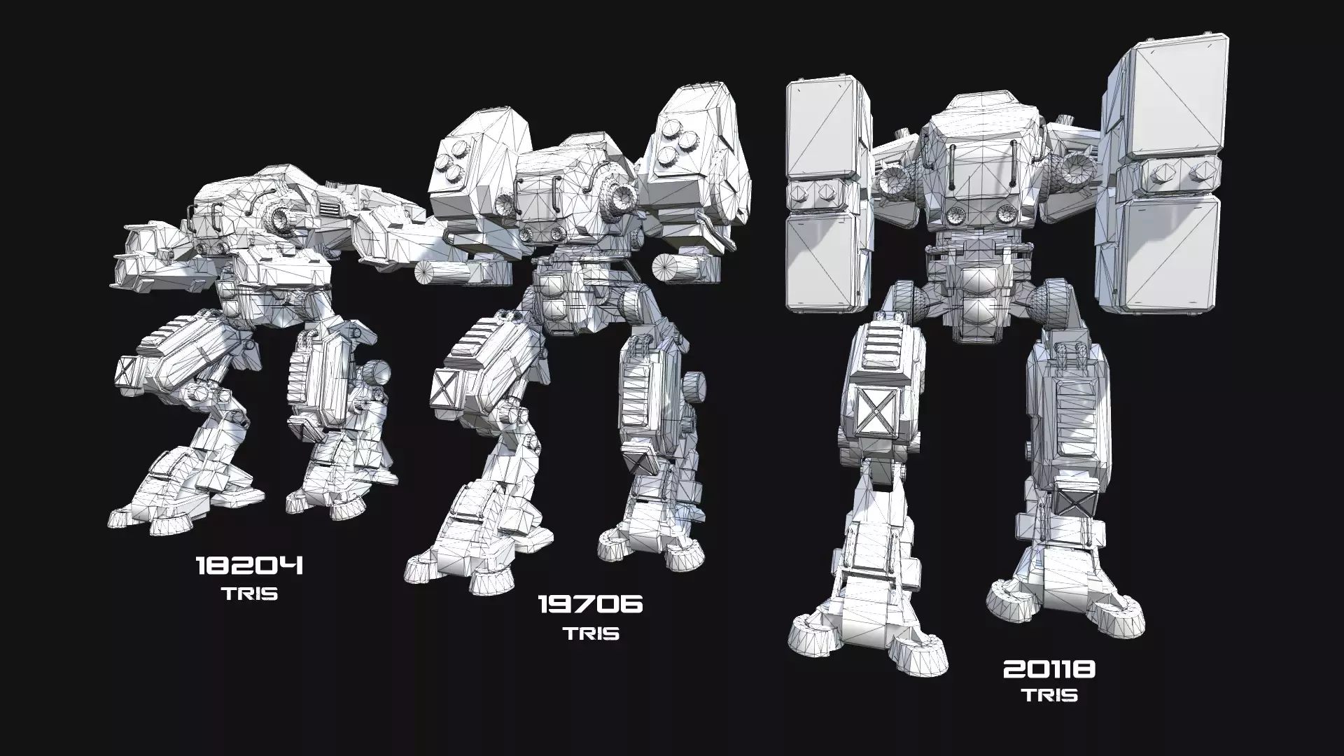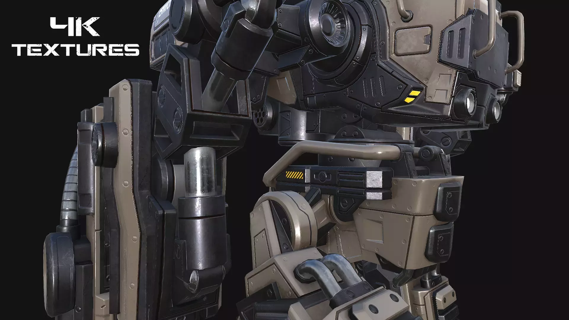 Для достижения наилучших характеристик каждый элемент меха имеет свой собственный материал и свой собственный набор текстур (Альбедо, Зеркальный + глянцевый, Обычный, Окружающая окклюзия).