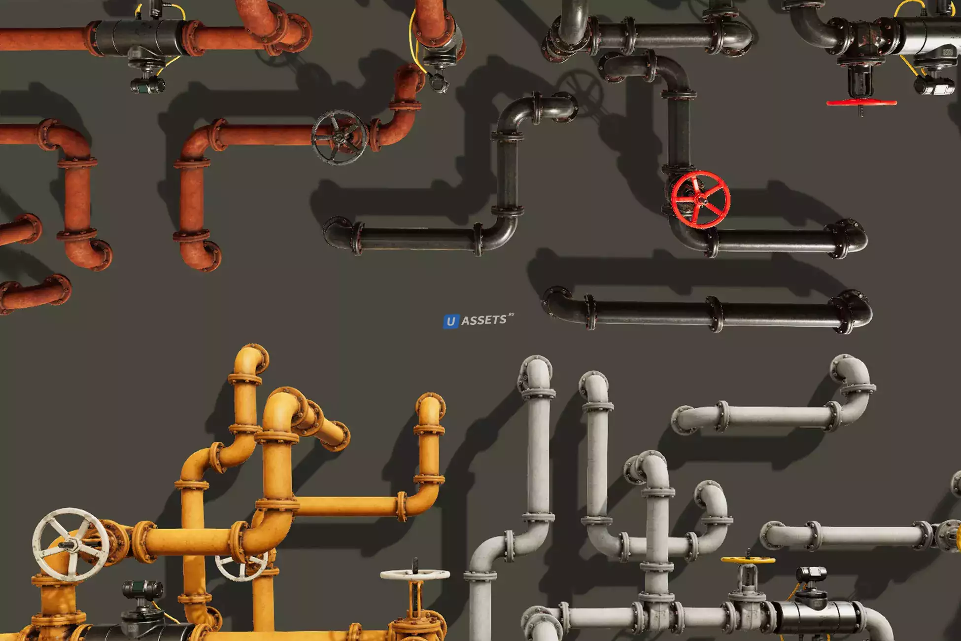 Очень детализированный низкополигональный набор труб с высококачественными текстурами PBR и 4 различными цветовыми вариациями. Набор труб PBR. Этот пакет содержит следующее: - 12 различных сегментов. - Набор из 4 текстур PBR. ГОТОВЫ К ВИРТУАЛЬНОЙ РЕАЛЬНОСТИ