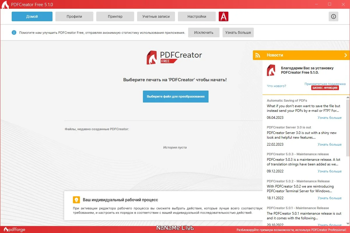 PDFCreator 5.1.0 — это бесплатная программа для создания PDF-файлов из любых документов. Её принцип работы основан на использовании виртуального принтера: вы отправляете нужный файл на печать, выбирая в качестве устройства печати PDFCreator, а затем сохраняете результат в требуемом формате.