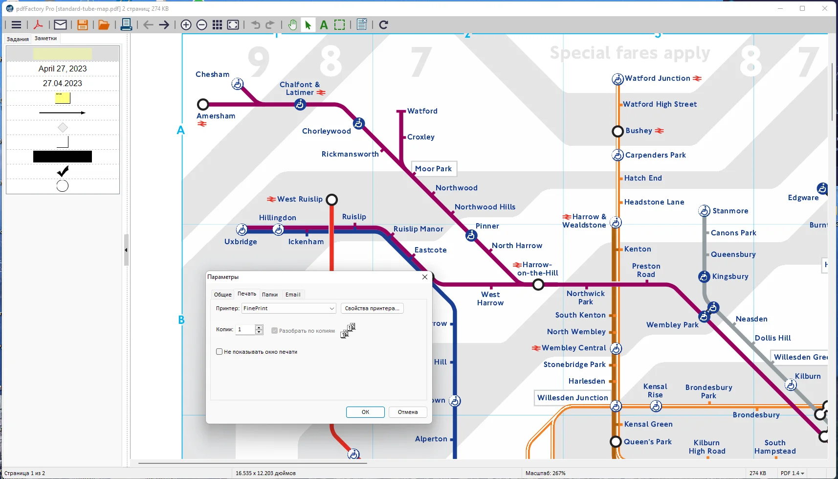 После установки в системе появляется виртуальный принтер FinePrint pdfFactory, настроенный по умолчанию на формат A4. Его свойства позволяют гибко настраивать размер листа, ориентацию, метрики печати, отступы и разрешение. Пользователь может управлять качеством изображений для контроля итогового размера файла, выбирать шрифты для внедрения и решать, отображать ли диалоговое окно редактирования при печати. Дополнительные функции включают отправку готового PDF-файла по электронной почте непосредственно из интерфейса программы.