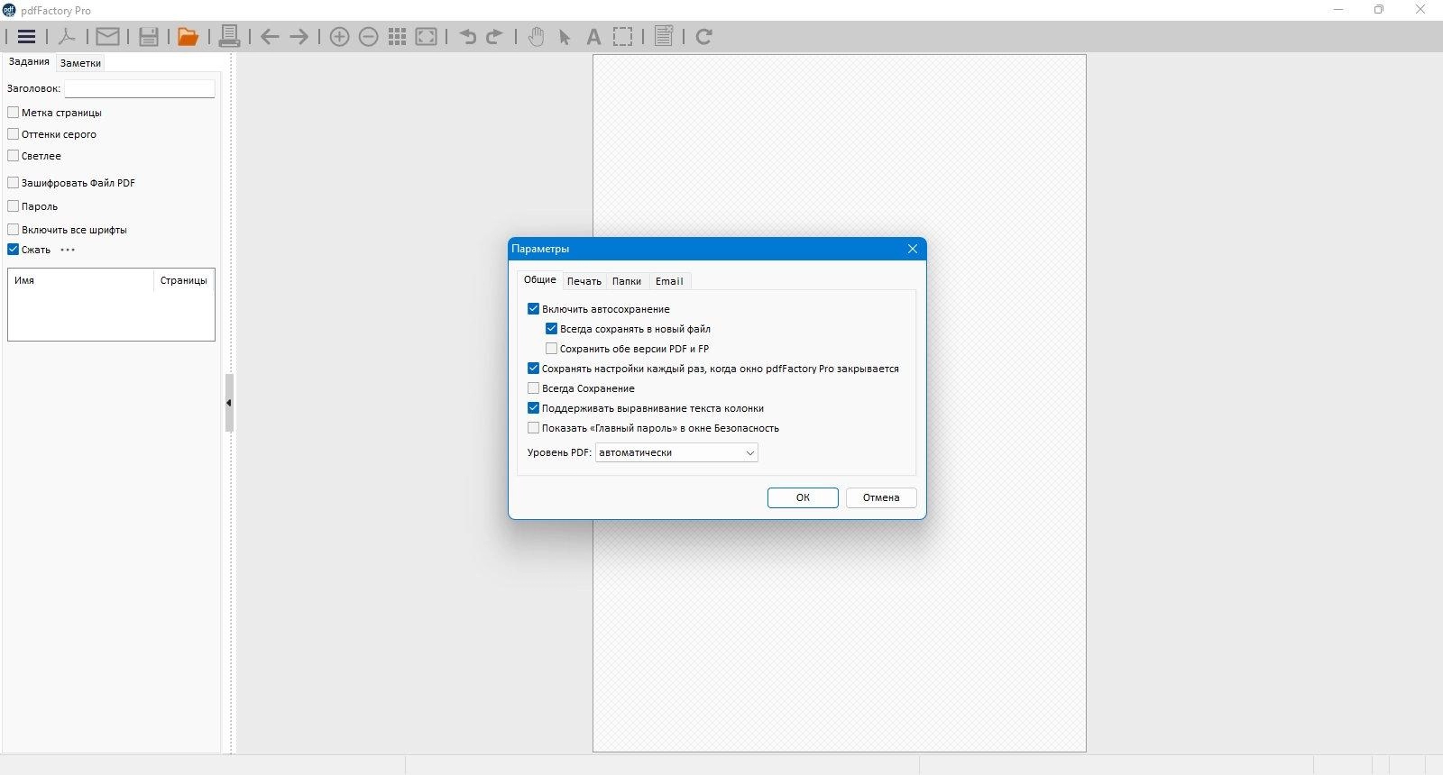 Профессиональная версия PdfFactory Pro предлагает расширенный функционал по сравнению со стандартной. В нее входят инструменты для добавления номеров страниц, верхних и нижних колонтитулов, водяных знаков и закладок. Также доступны настройки пользовательского интерфейса, управление качеством графики и функция сохранения в собственный формат FP.