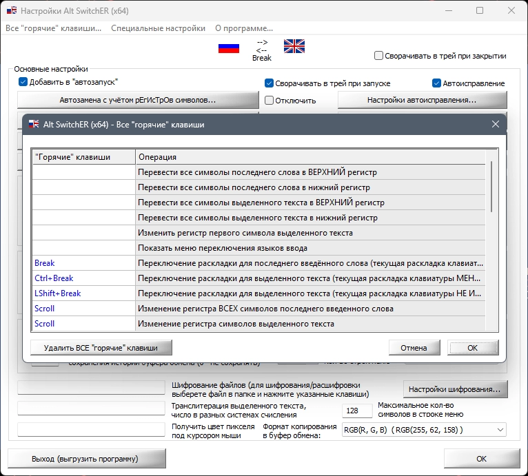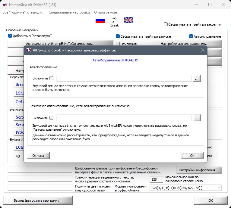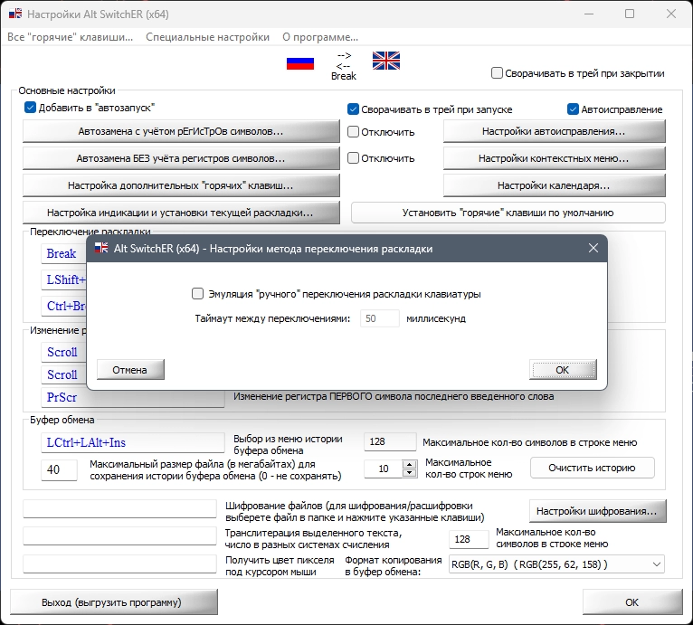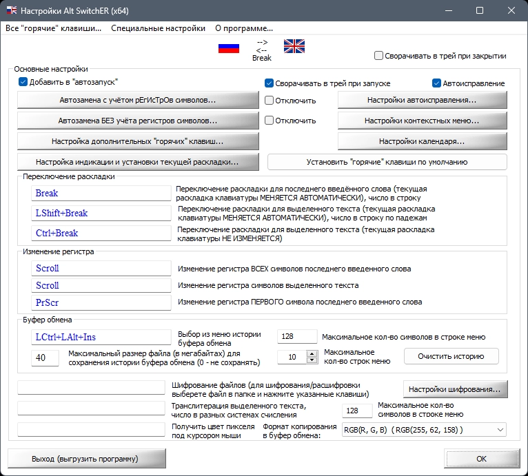 Переключатель раскладки клавиатуры Alt SwitchER 21.6 Portable — это удобная утилита для автоматического исправления раскладки вводимого текста. Программа оснащена функцией автообучения, позволяет вручную добавлять слова в пользовательский словарь и словарь исключений, а также назначать исключения для конкретных приложений.