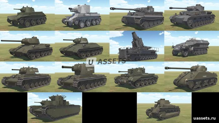 - Готовые сборные танки [Cromwell, Firefly, Moser Karl, KV-I, KV-II, Panzer-IV, Sdkfz251 (полугусеничный), T-34-76, T-34-85, T-35 (многобашенный), Tiger-I, Type-89(JP), БТ-7, БТ-42]