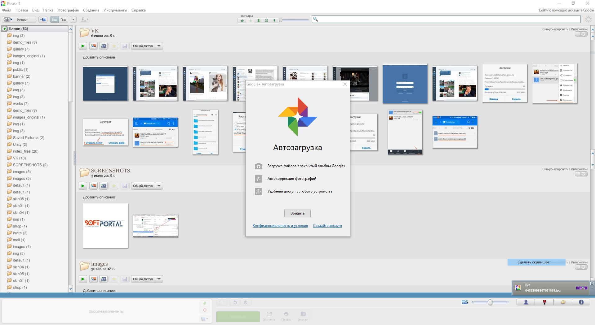 Еще одним преимуществом сервиса Picasa является наличие полноценной программы клиента для