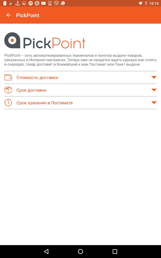 Приложение PICKPOINT RUSSIA позволяет отслеживать статусы доставки заказов из интернет-магазинов в постаматы и пункты выдачи PickPoint.