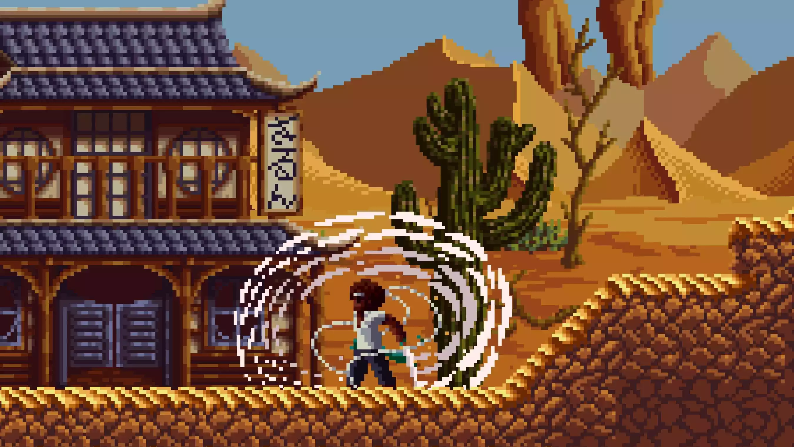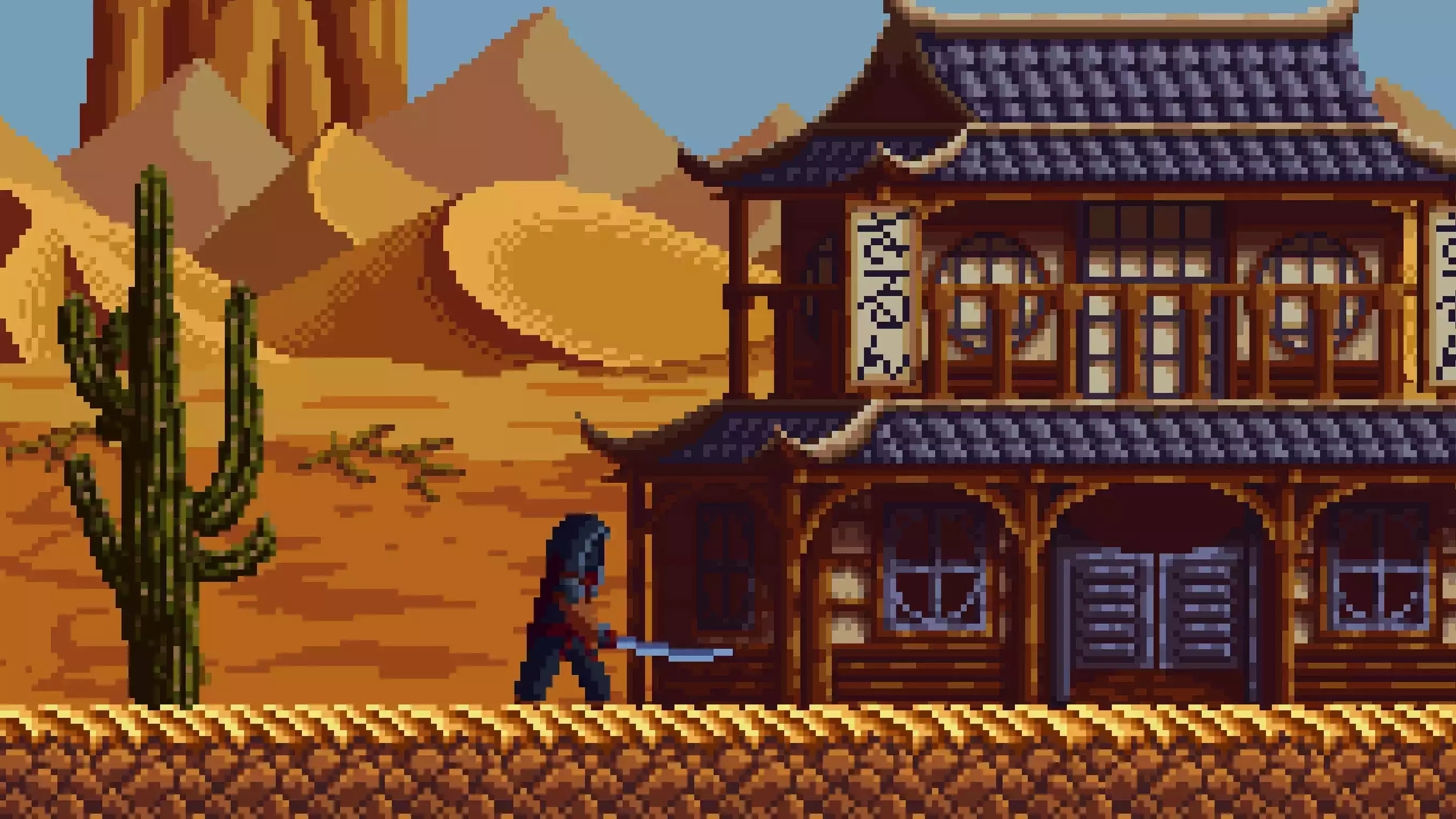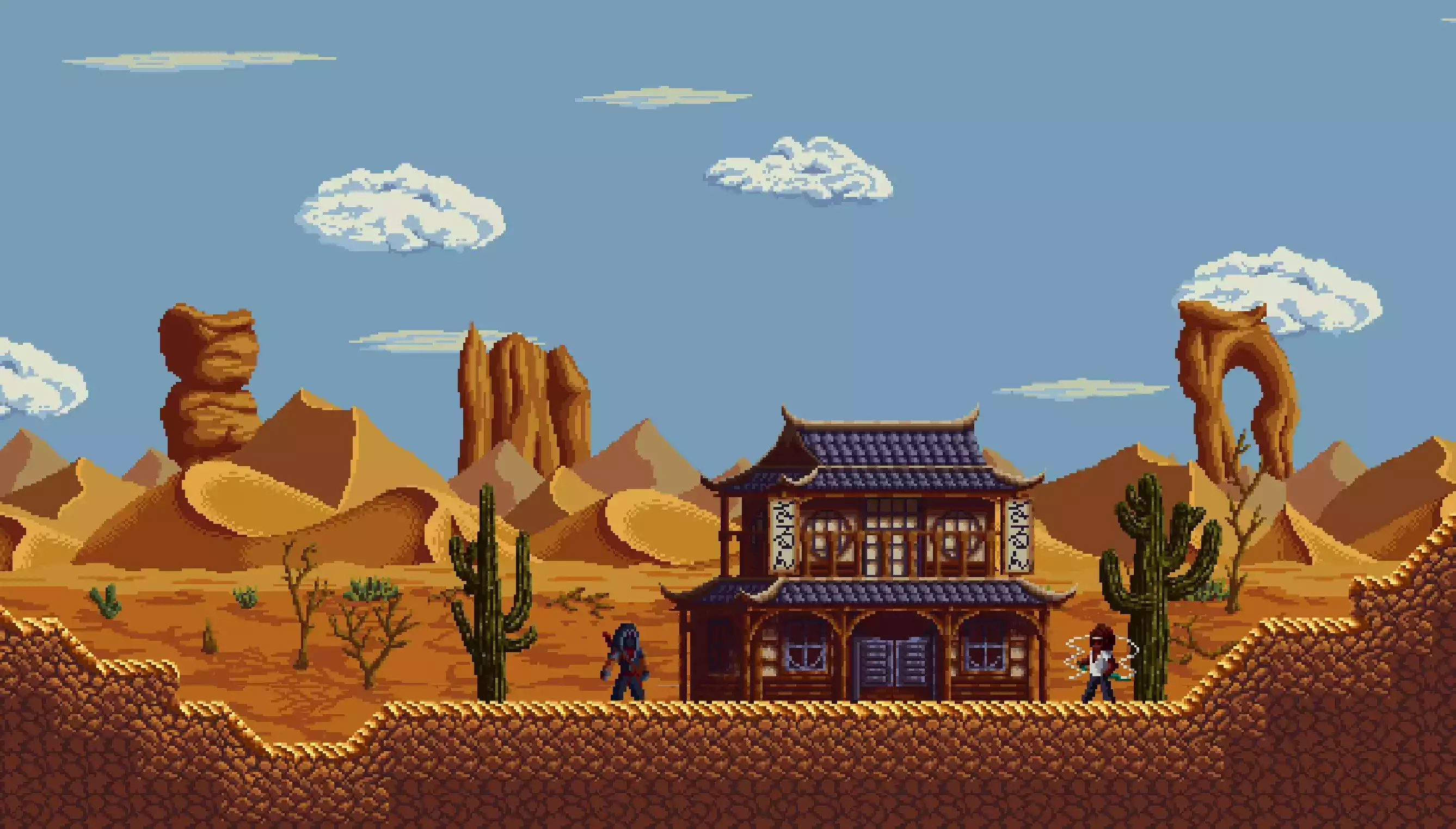 Набор плиток Pixelart Samurai Side view - #1 - Окружающая среда пустоши с 2 красивыми анимированными персонажами пиксельной графики