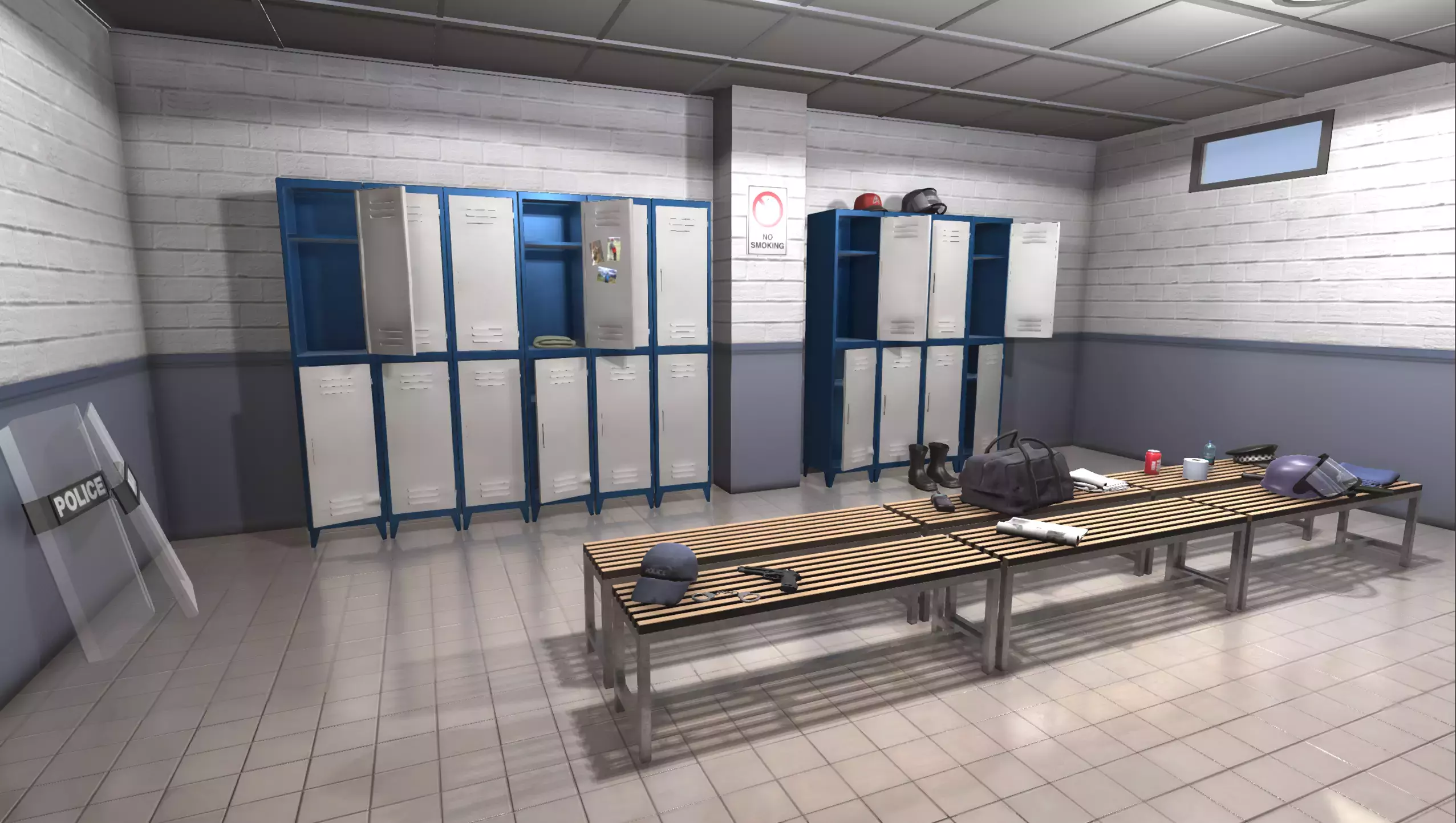 Интерьер раздевалки полицейского участка. Здесь есть мебель, такая как скамейки, шкафчики и различные предметы, которые можно было бы найти в настоящей раздевалке, такие как полотенца, ботинки и полицейские предметы, такие как пистолет, рация, дубинка, наручники, шлем и фуражки. Есть также другие модели, такие как мусорное ведро, сумка, информационные материалы.....Все модели являются низкополигональными и могут использоваться в играх и приложениях. Наше последнее обновление было протестировано для виртуальной реальности