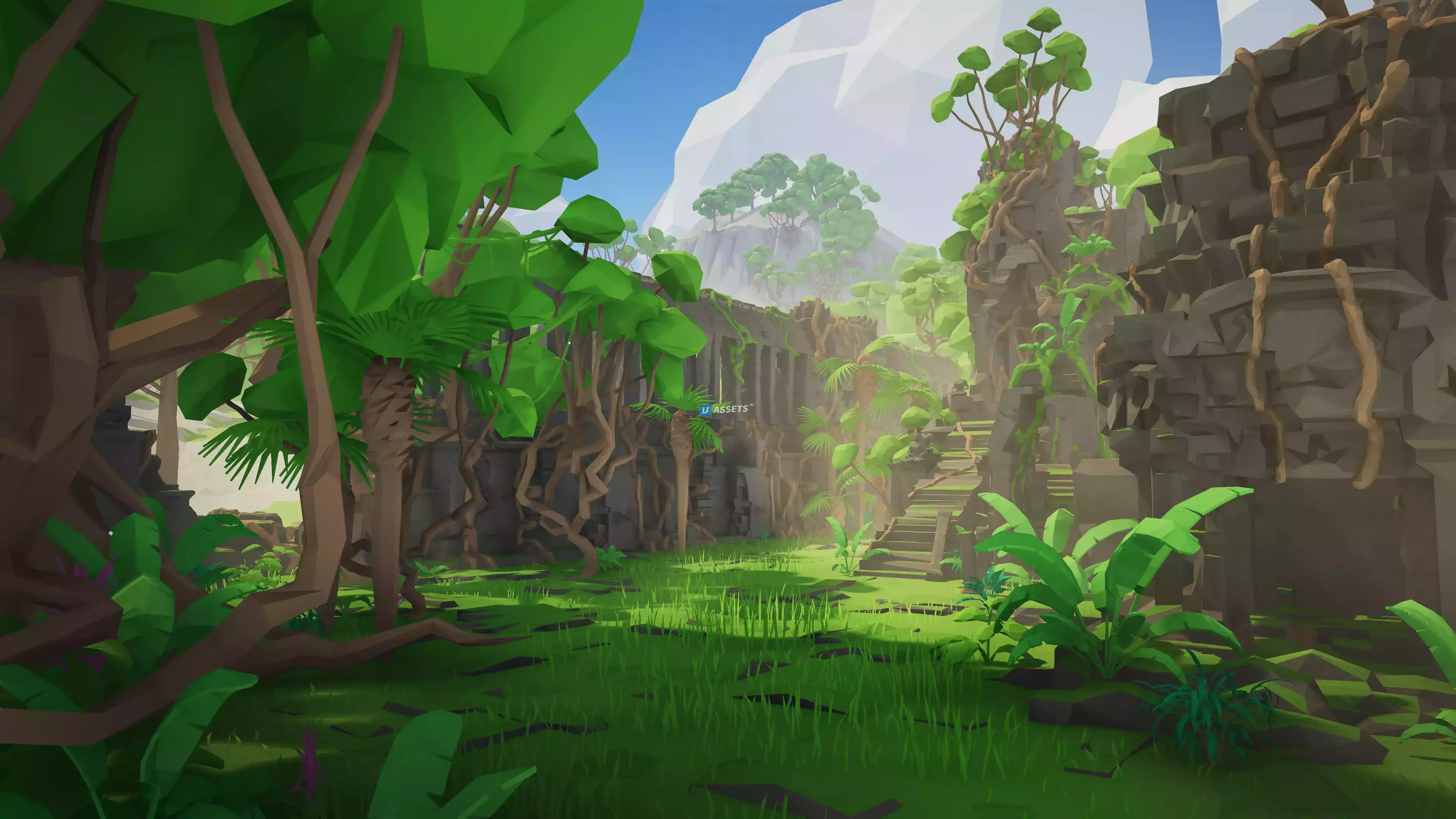 Коллекция низкополигональных ассетов на тему джунглей. С полным храмом Ангкор-Ват!