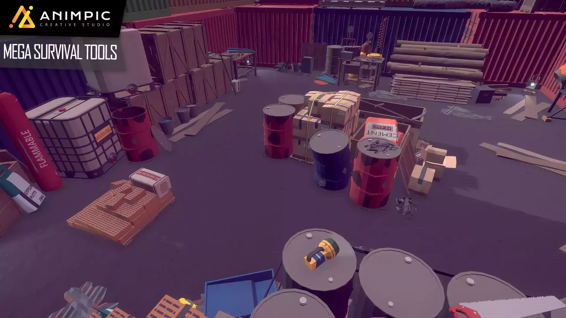 Контейнеры, коробки и бочки, строительные предметы, инструменты, молотки, топоры, дрели, ведра, цемент и т.д.