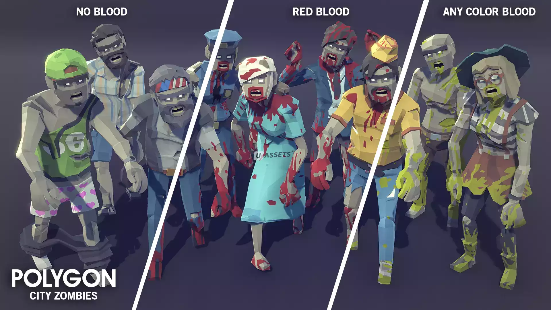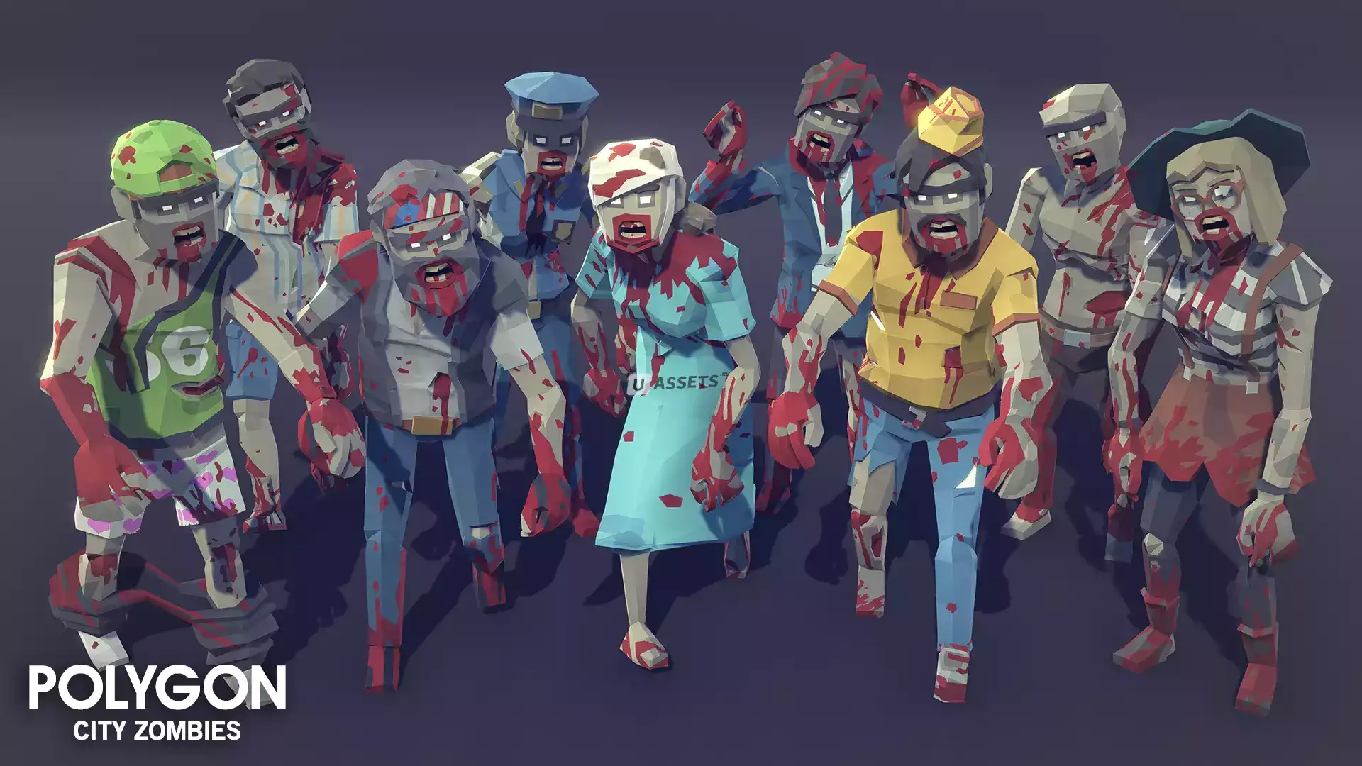 Эпический низкополигональный набор ресурсов зомби-персонажей для создания полигональной игры на тему апокалипсиса.