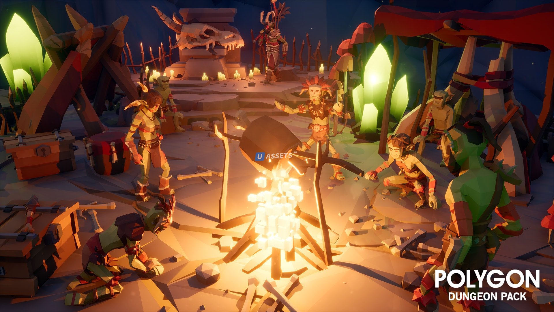 Эпический пакет низкополигональных активов, состоящий из персонажей, реквизита, оружия и объектов окружающей среды для создания игры в полигональном стиле в стиле Фэнтези.