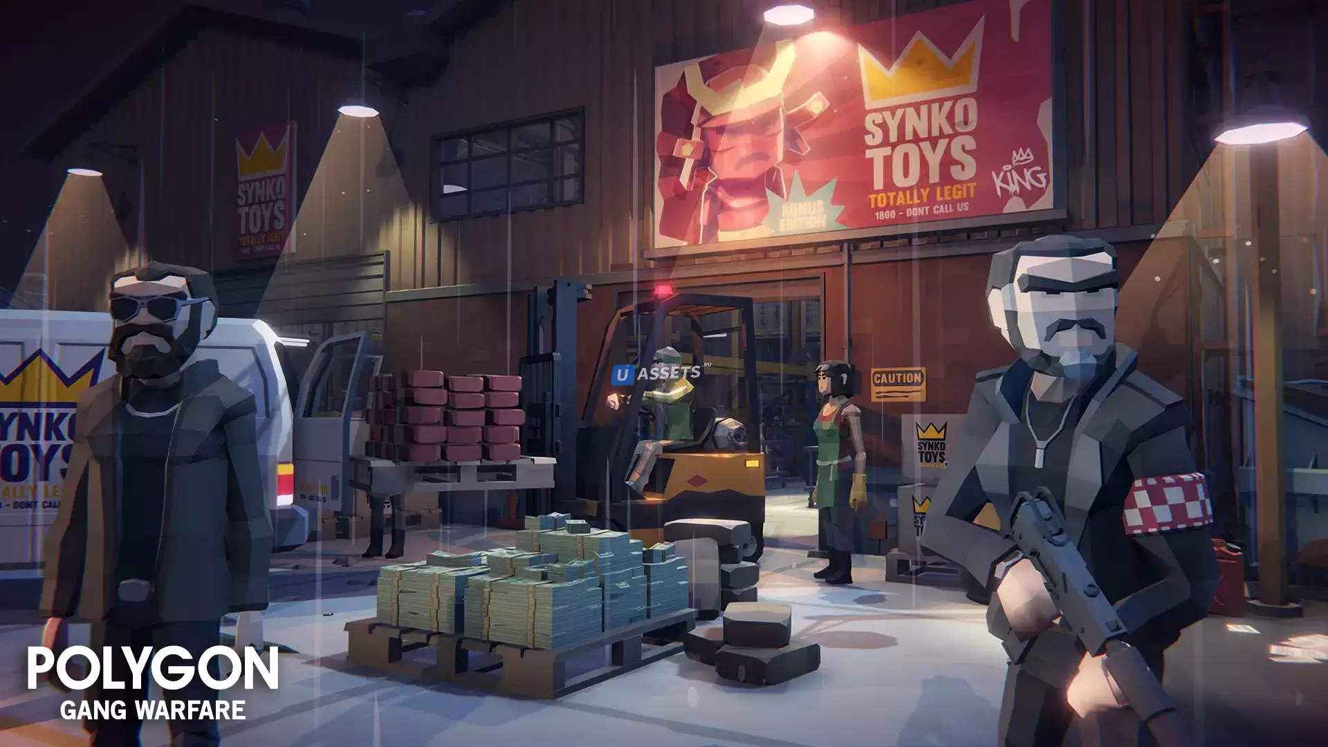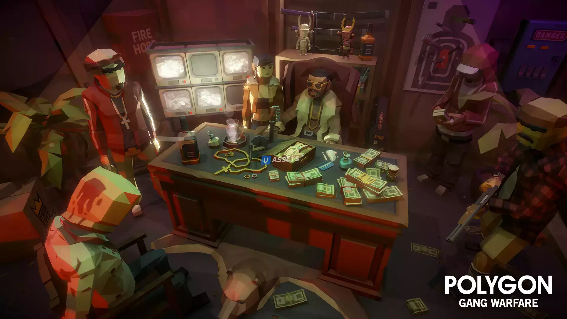Пакет низкополигональных объектов зданий, транспортных средств, персонажей и реквизита для создания полигональной игры на криминальную тематику.