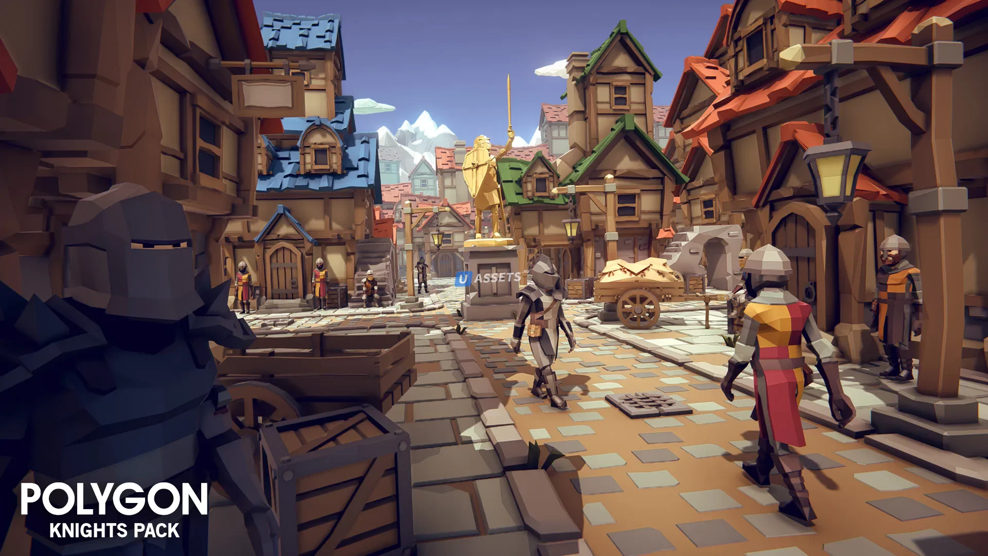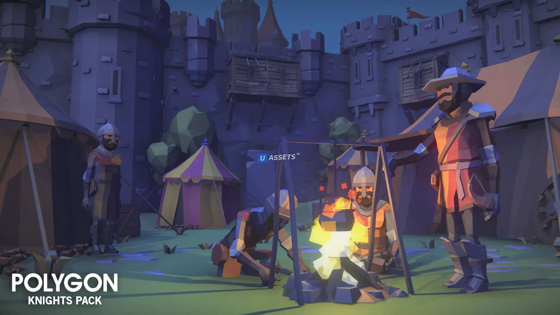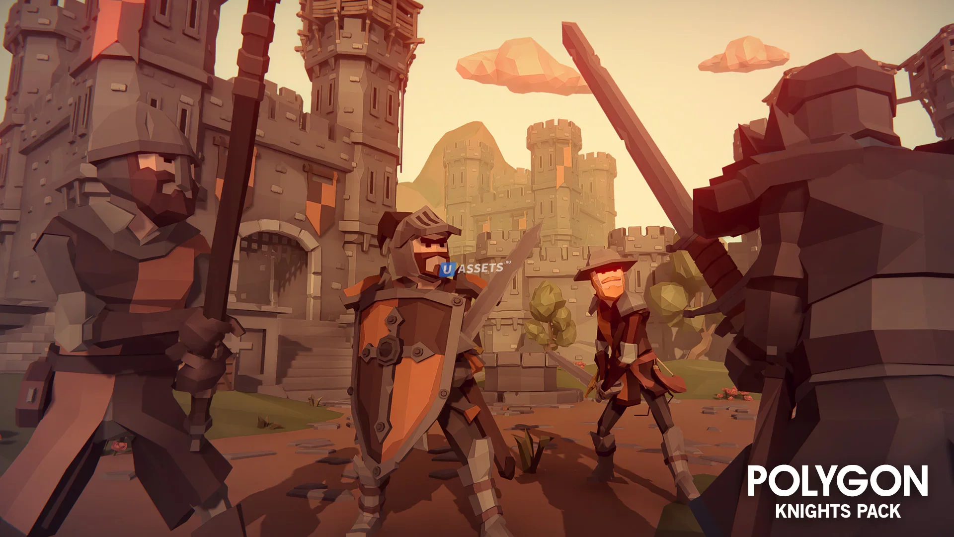 Пакет низкополигональных активов, состоящий из персонажей, зданий, реквизита, предметов и объектов окружающей среды для создания игры в полигональном стиле, основанной на фантазии.