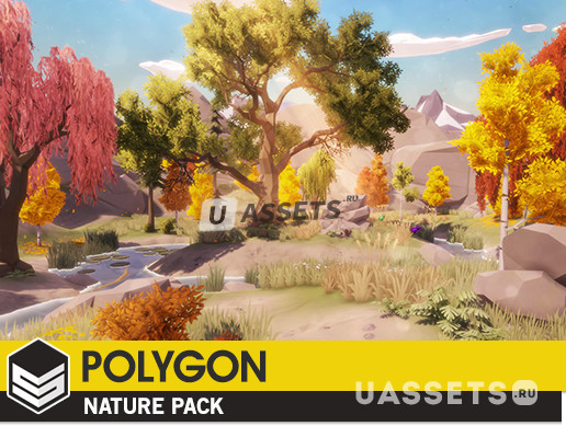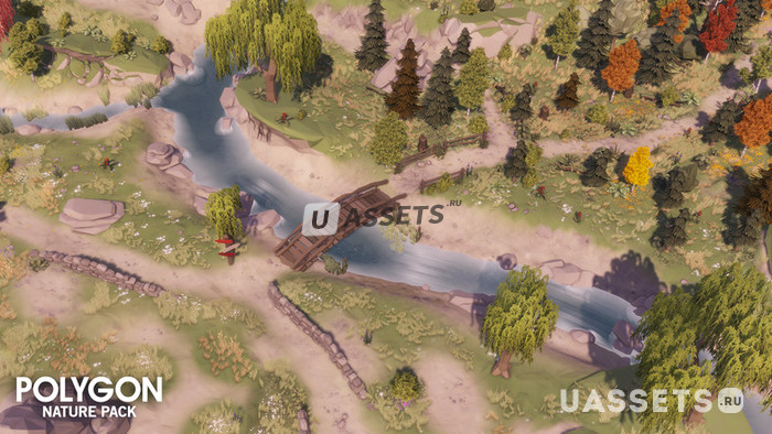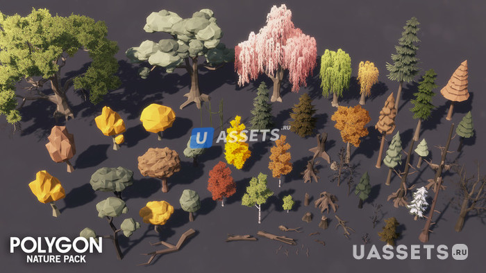 Пакет низкополигональных активов, состоящий из деревьев, растений, местности, камней, реквизита и FX-активов, которые можно добавить в вашу существующую игру в полигональном стиле.