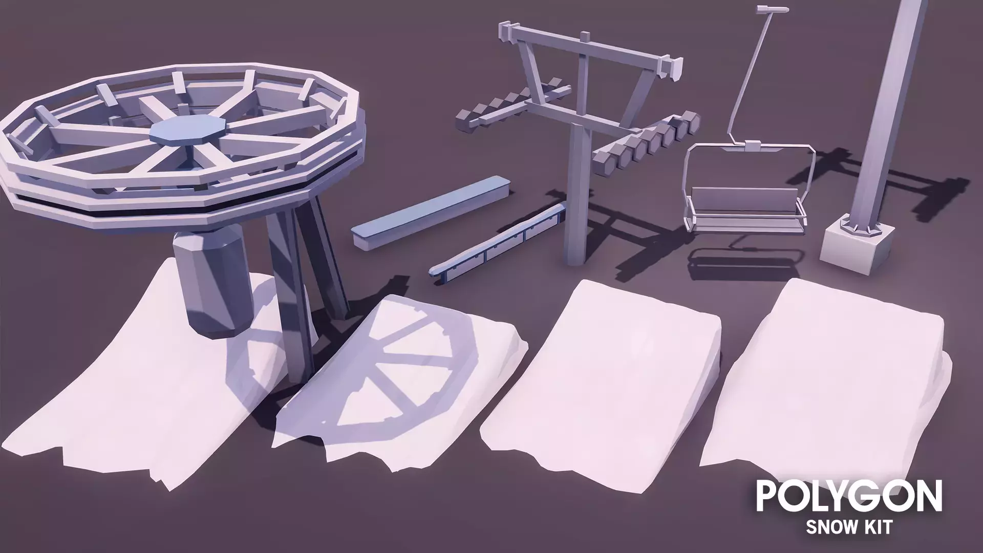 - Флажок 03, Флажок 04, Флажок 05, Трос подъемника 01, Кресло подъемника 01, Стойка подъемника 01, Поворот подъемника 01, Рейка 01, Рейка 02, Рампа 01, Рампа 02, Рампа 03, Рампа 04, Лыжная палка, Снегоочиститель 01