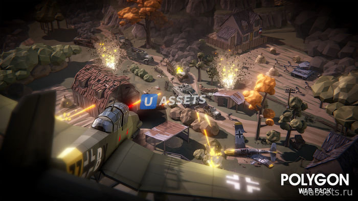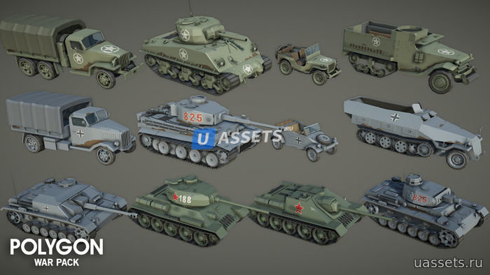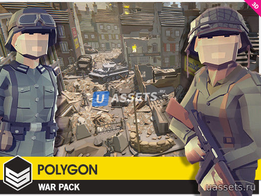 Низкополигональный набор персонажей, реквизита, оружия и объектов окружающей среды для создания игры в полигональном стиле на военную тематику.
