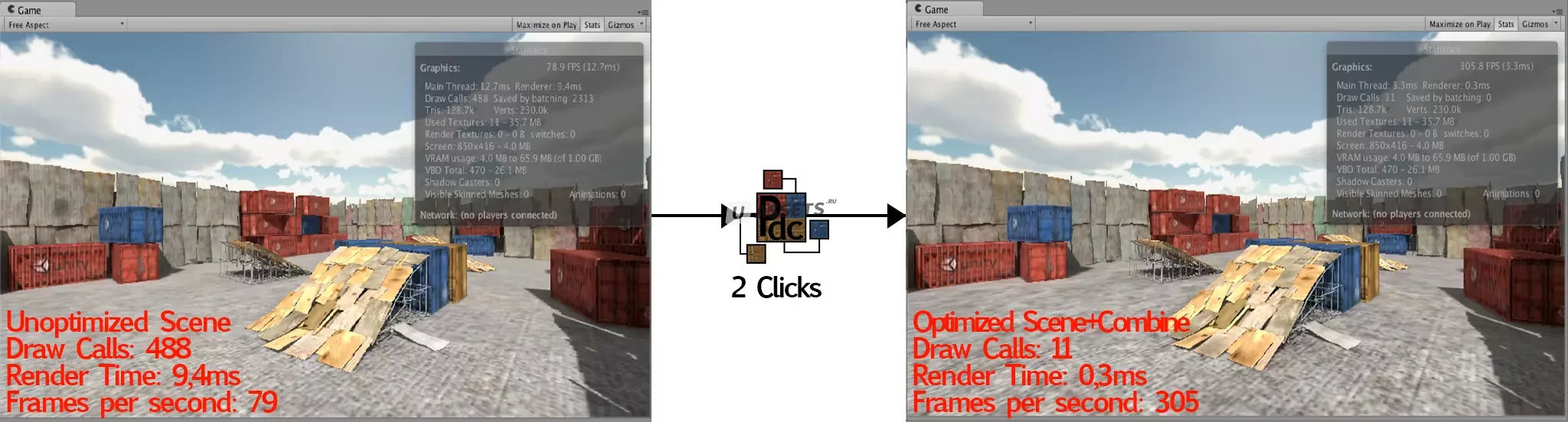 - Легко, 2 клика, и ваша сцена оптимизирована