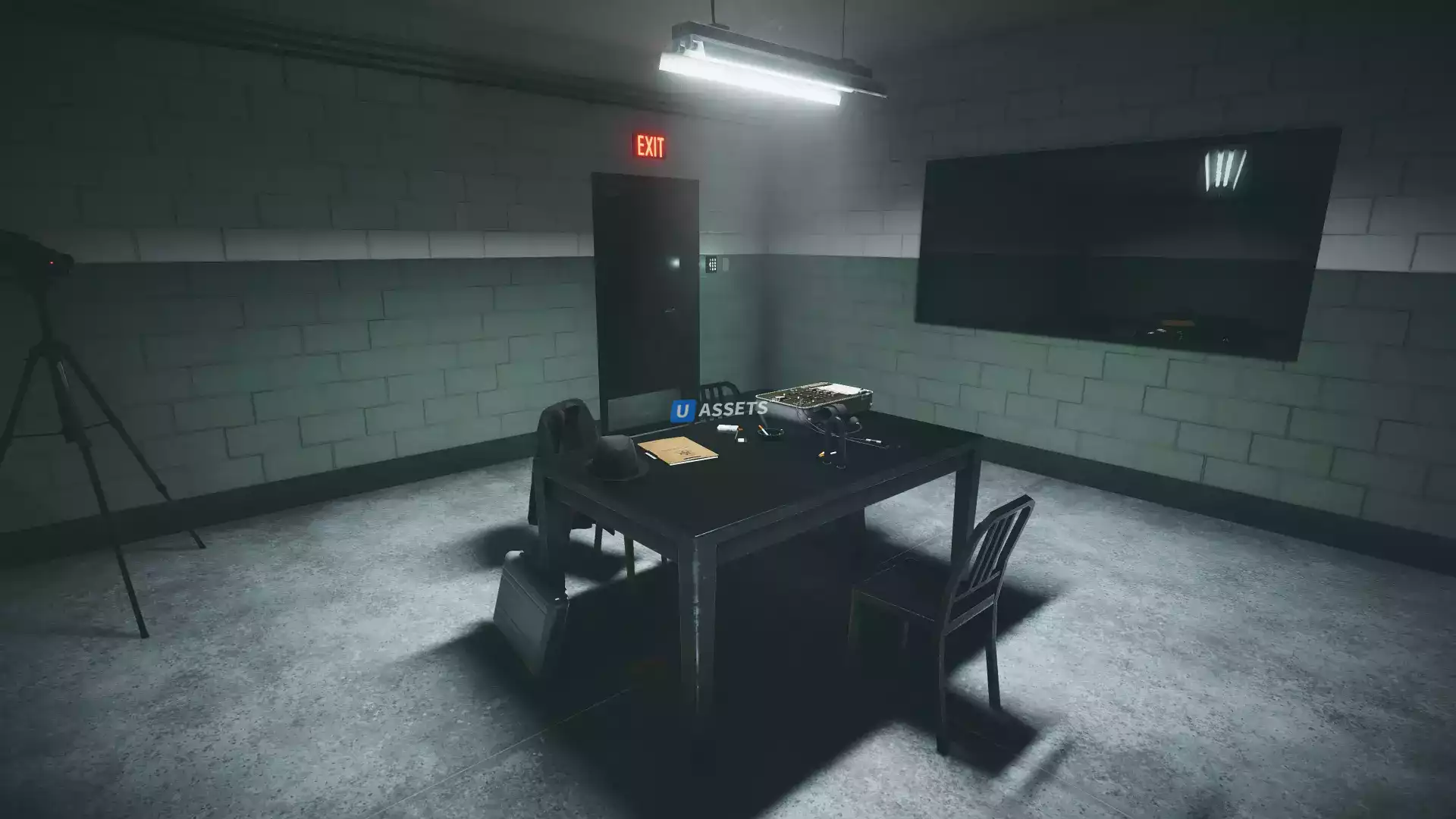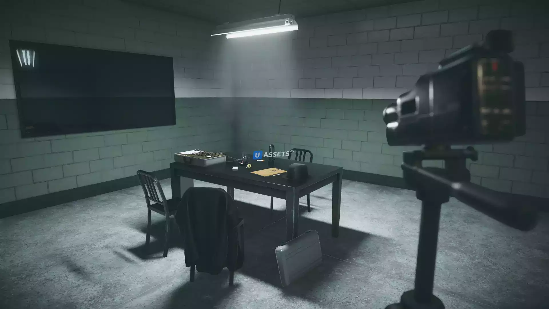 QA Interrogation Room — это полностью модульный набор с более чем 60 игровыми объектами, позволяющий строить интерьеры спецпомещений полиции и спецслужб.