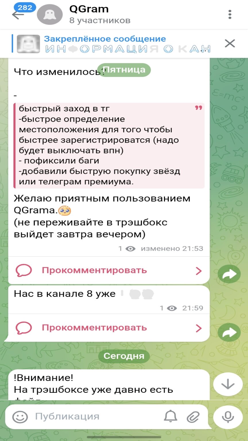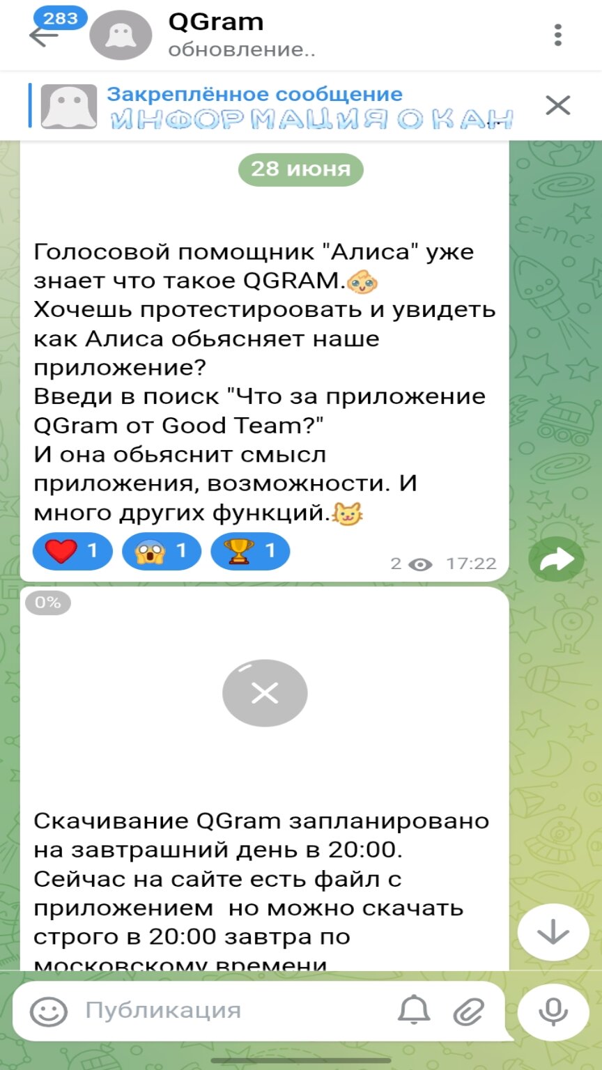 Вы можете отправлять медиафайлы и документы любых типов и размеров без лимитов. Архив переписки хранится в облаке QGRAM, экономя память на ваших устройствах.