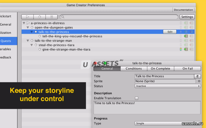 Quests for Game Creator — это идеальный инструмент для создания историй, который дает вам самые современные инструменты для создания задач.