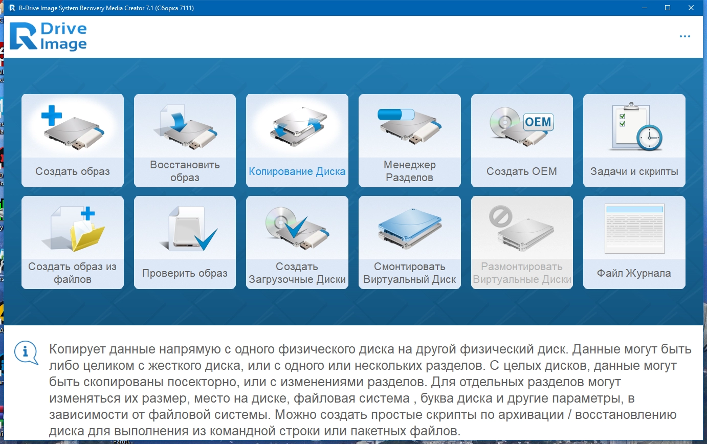 R-Drive Image System Recovery Media Creator 7.1 Build 7111 Repack + Portable by KpoJIuK — это мощный инструмент для создания образов дисков и надежного резервного копирования данных. Программа позволяет создавать точные, побайтовые копии жестких дисков, разделов или логических дисков без необходимости перезагрузки компьютера, с возможностью выбора уровня сжатия данных. Созданные образы можно сохранять на различных носителях, включая CD-R(W)/DVD и другие съемные устройства.
