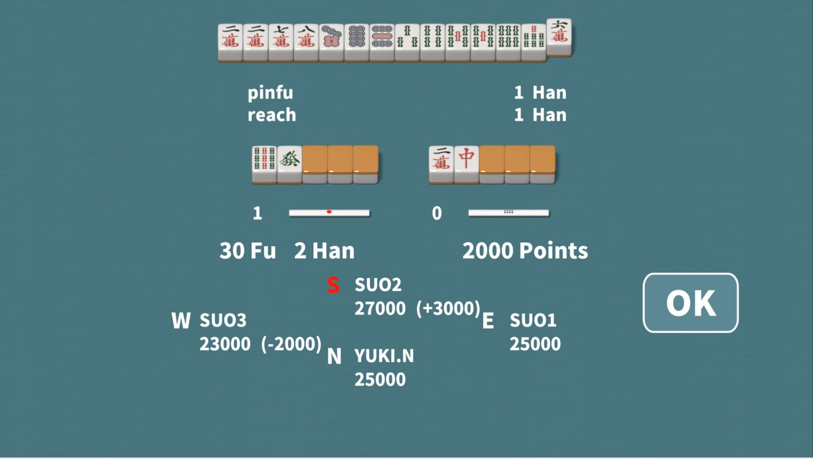 Начиная с версии 2.0, программа R MAHJONG - RIICHI MAHJONG 2.0.3 оснащена продвинутым ИИ. Его игровой уровень соответствует стабильному 6.8-7.0 тенхо дану, что означает, что он сильнее 99.7% игроков на популярной платформе tenhou.net. Игра против столь сильных виртуальных оппонентов открывает новый уровень сложности и опыта, недоступный в приложениях со слабым компьютерным противником.
