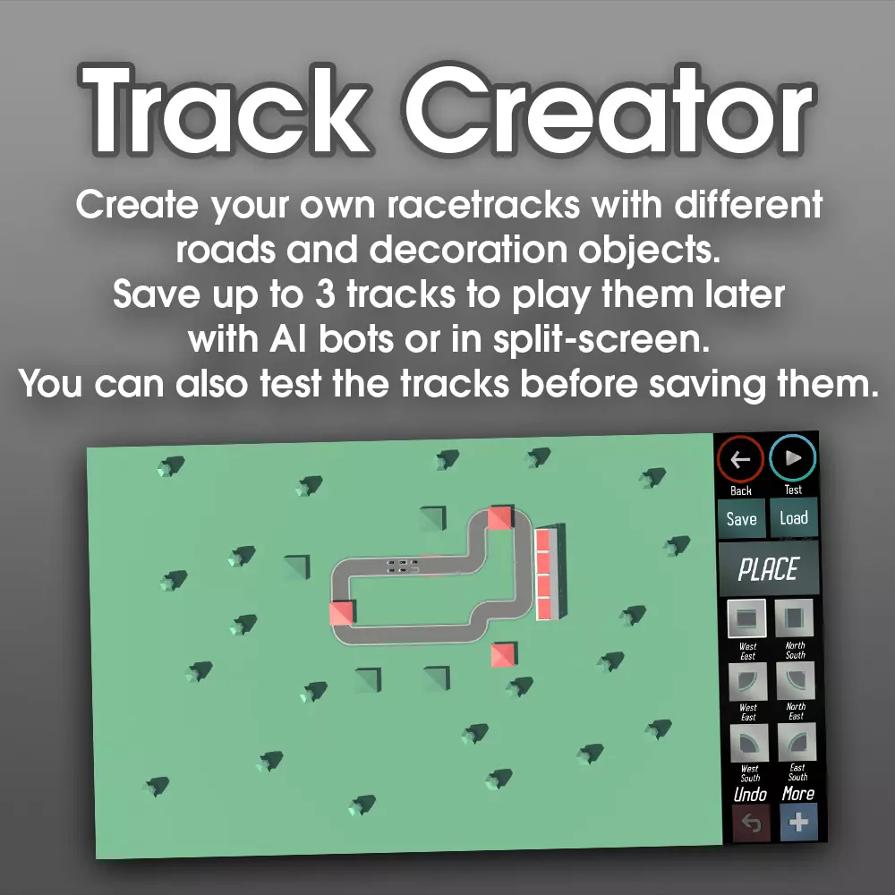 Track Creator позволяет вам создавать свои собственные гоночные трассы и проходить их в режиме бесплатной игры.