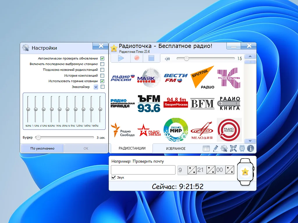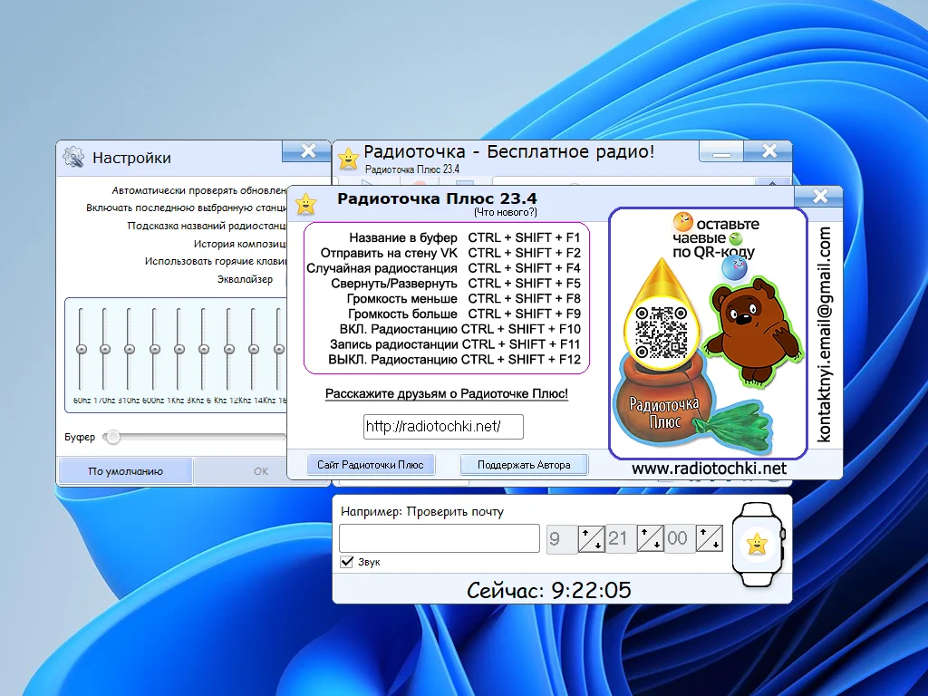 Радиоточка Плюс 23.4 + Portable — это стильное и удобное приложение для прослушивания и записи интернет-радио на компьютере под управлением Windows. Программа отличается чистым интерфейсом без рекламы, тулбаров и необходимости активации.