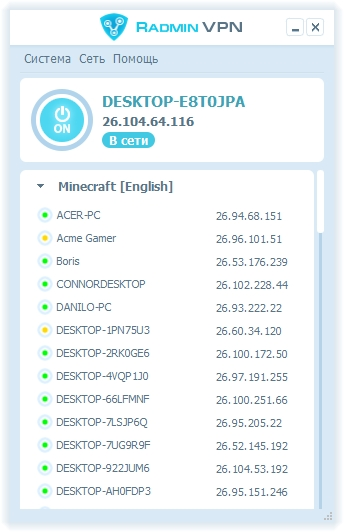 Radmin VPN - это небольшая бесплатная программа для создание частной виртуальной сети VPN, позволяет подключаться к уже созданным сетям, обеспечивая безопасное соединения и высокую скорость внутри сети. Преимущество программы в ее простоте и высоком уровне безопасности, благодаря ей сегодня существуют тысячи виртуальных сетей, чаще всего используются для совместных онлайн игр, которые требуют внутреннюю локальную сеть для игры с друзьями. Кроме того, нельзя упомянуть и про высокую скорость работы в сети, программа позволяет обеспечивать до 100 Мбит / с, этого к примеру, достаточно чтобы комфортно играть десяткам игроков, подключенных к одной сети.