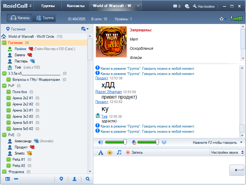 RaidCall — бесплатное приложение, предназначенное для организации голосового общения между геймерами во время игрового процесса. Работает в операционных системах «Windows», «Android» и «iOS». Основные возможности Обеспечение надежной связи при общении во время игры. Передача файлов. Поддержка функции «Поделиться видео с YouTube». Просмотр журналов активности. Режим голосования.