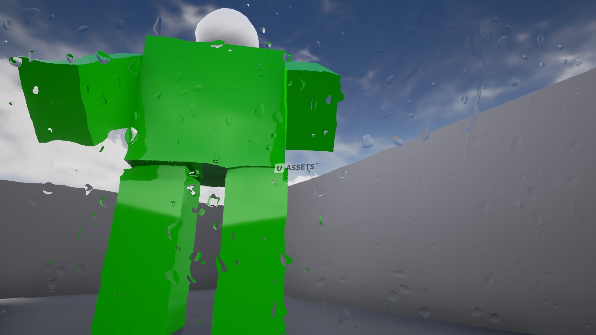 Визуальный эффект для имитации капель дождя, катящихся утечек и влажного слоя. Полезно для игр или сцен с дождливой погодой. Простота настройки и использования.
