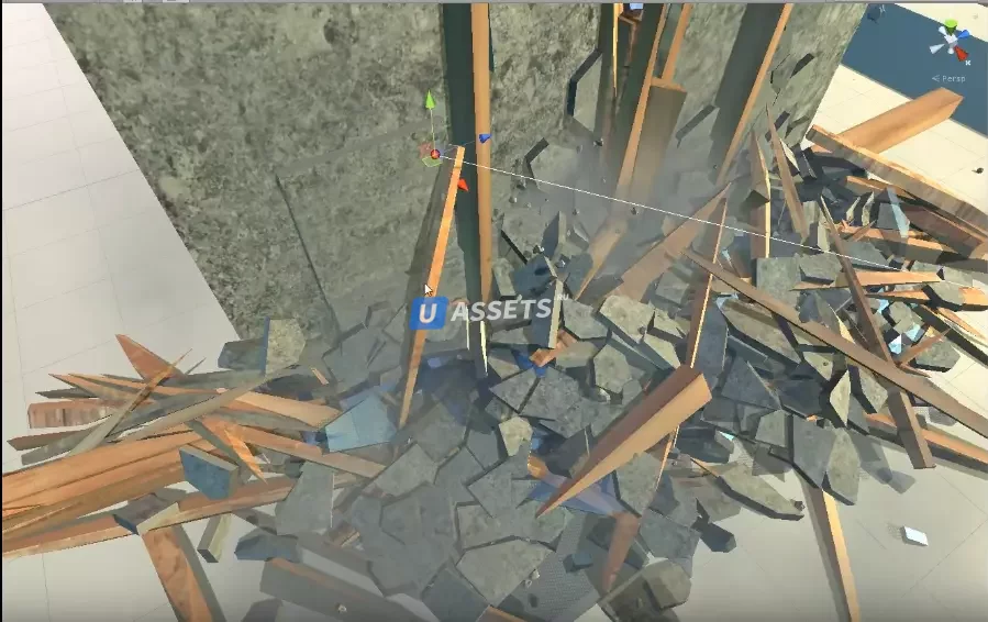 - Фрагменты, скопившиеся вместе с обломками. Позволяет склеивать фрагменты вместе и получать сложные высокополигональные вогнутые фрагменты.