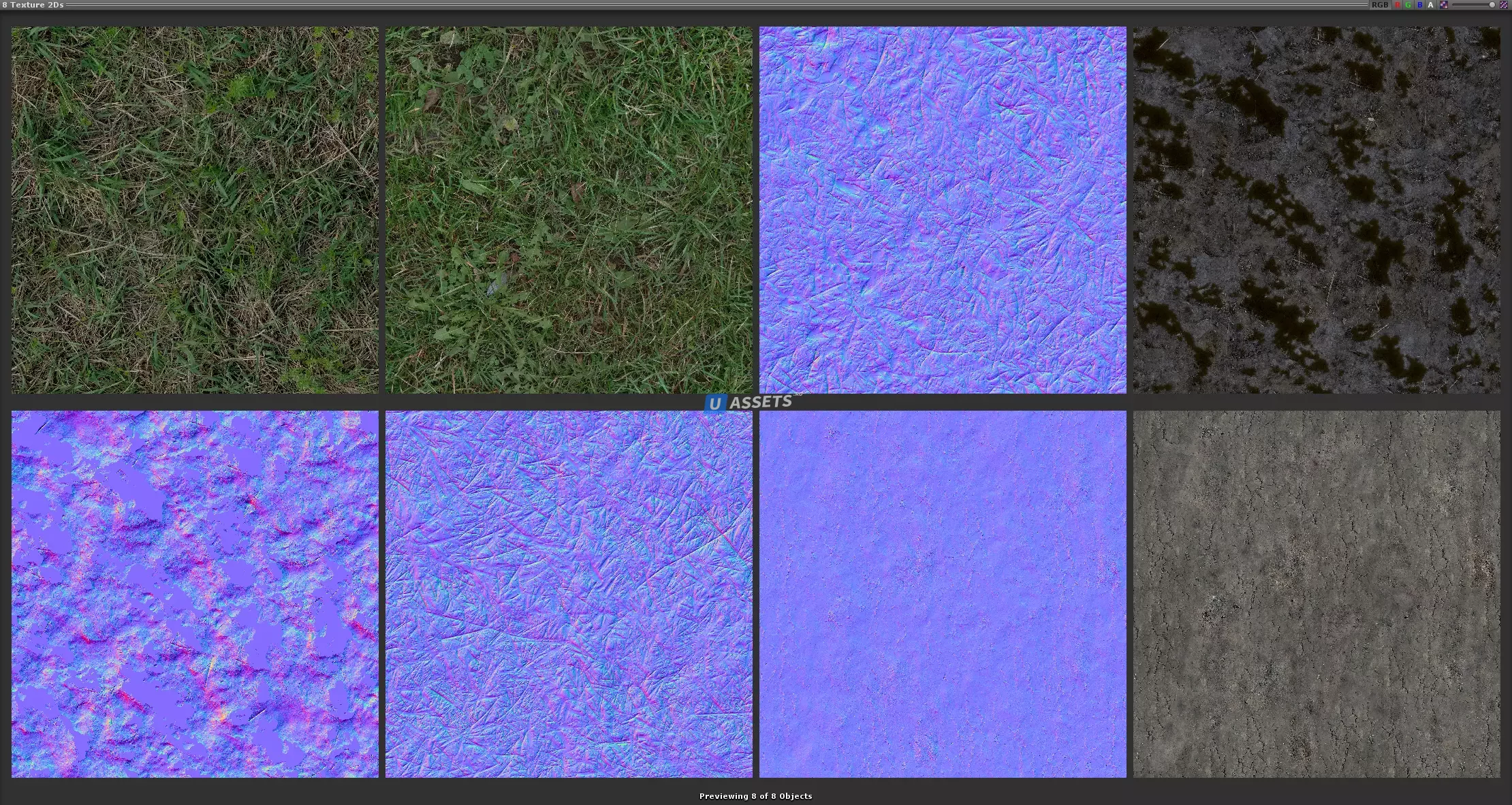 - 4 Текстуры Грунта(Диффузная,Нормальная Карта,Разрешение 2048x2048)