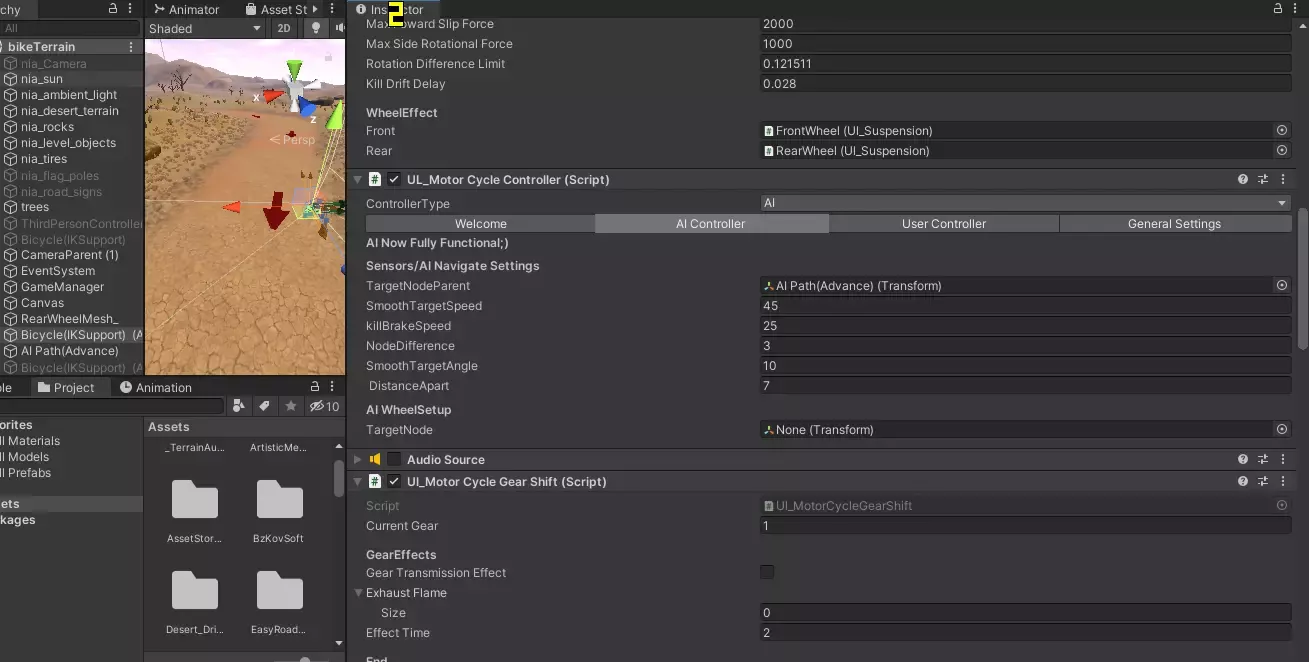 Создайте любой тип физики мотоцикла по своему выбору, этот пакет поставляется со встроенными сборными конструкторами, все, что вам нужно сделать, это заменить вашу модель на сборную модель велосипеда, сценарий не требуется
