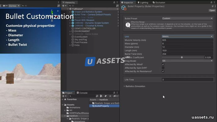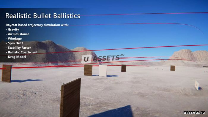 Создавайте реалистичные траектории пуль / баллистических траекторий, эффекты времени пули, системы динамического прицела, проникновения и рикошета и многое другое прямо из коробки.