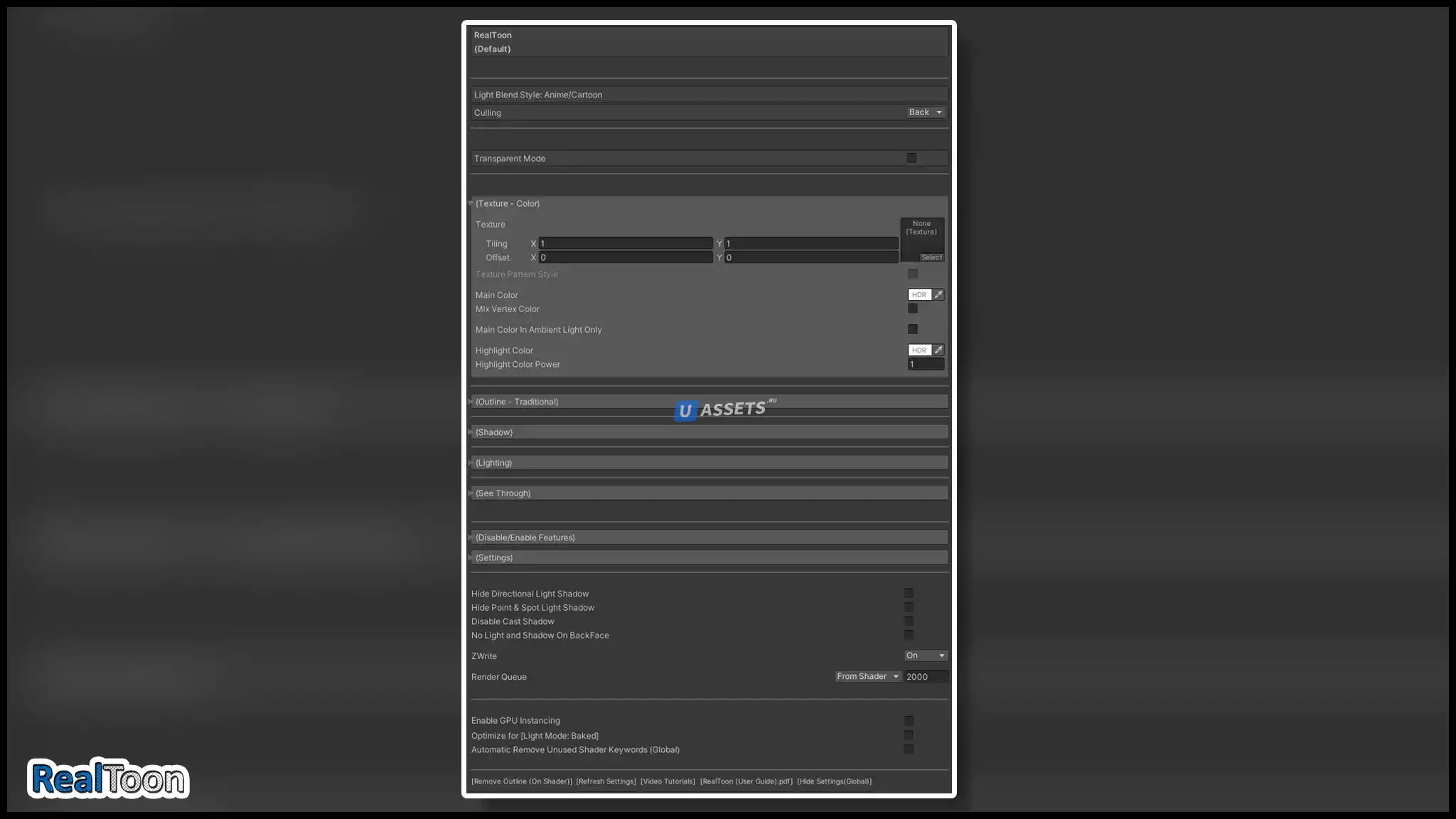 - Включает шейдеры RealToon (Lite Version) для мобильных или облегченных игр.