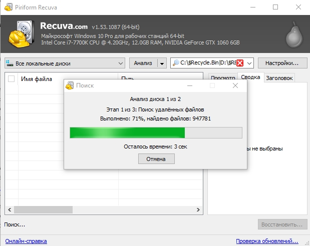 Быстрый анализ — когда нужно найти что-то удалённое недавно (и комп не супермощный);