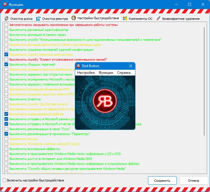 Red Button 5.96 + Portable – это комплексная утилита для оптимизации, очистки и тонкой настройки операционных систем Windows. Программа предназначена для повышения производительности, безопасности и удобства работы с компьютером.