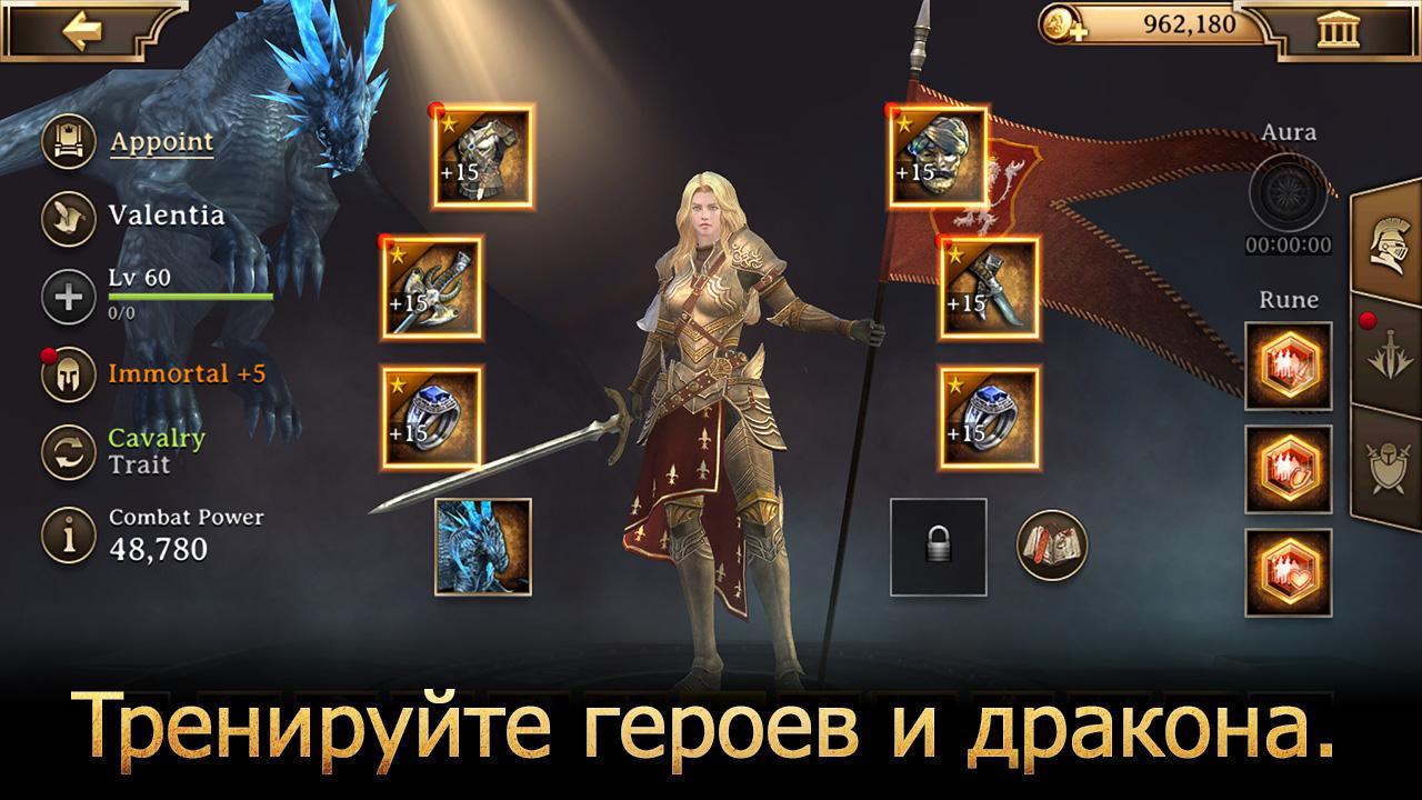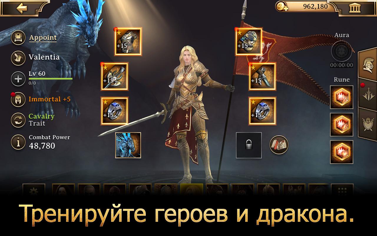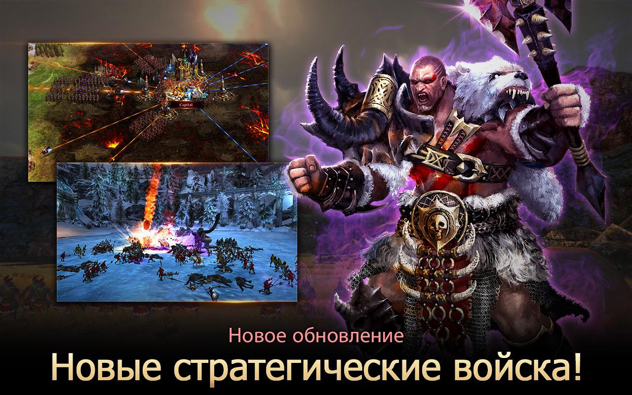 Вы можете бросить вызов любому сопернику в любое время. Стратегия заключается в грамотном управлении: строительстве и улучшении замка, найме и прокачке уникальных героев, а также формировании непобедимой армии для экспансии своей империи.