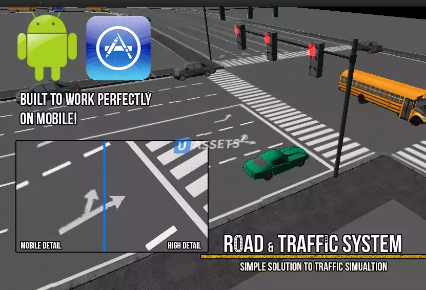 Система очень легко настраивается благодаря интегрированному инструментарию редактора Unity. Пользователи имеют возможность настраивать свои собственные дорожные участки и расширять базовые дорожные участки и светофоры, доступные им в системе Road & Traffic. Создан для быстрой работы и на мобильных устройствах тоже! Включена новая пешеходная система!